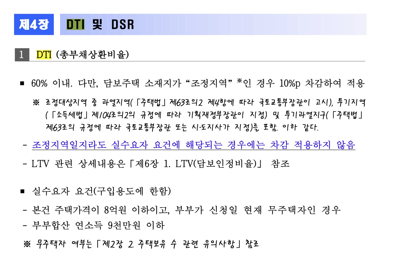 보금자리론 업무처리기준 서류를 살펴보면, 보금자리론의 경우 DTI를 60%가 적용된다.