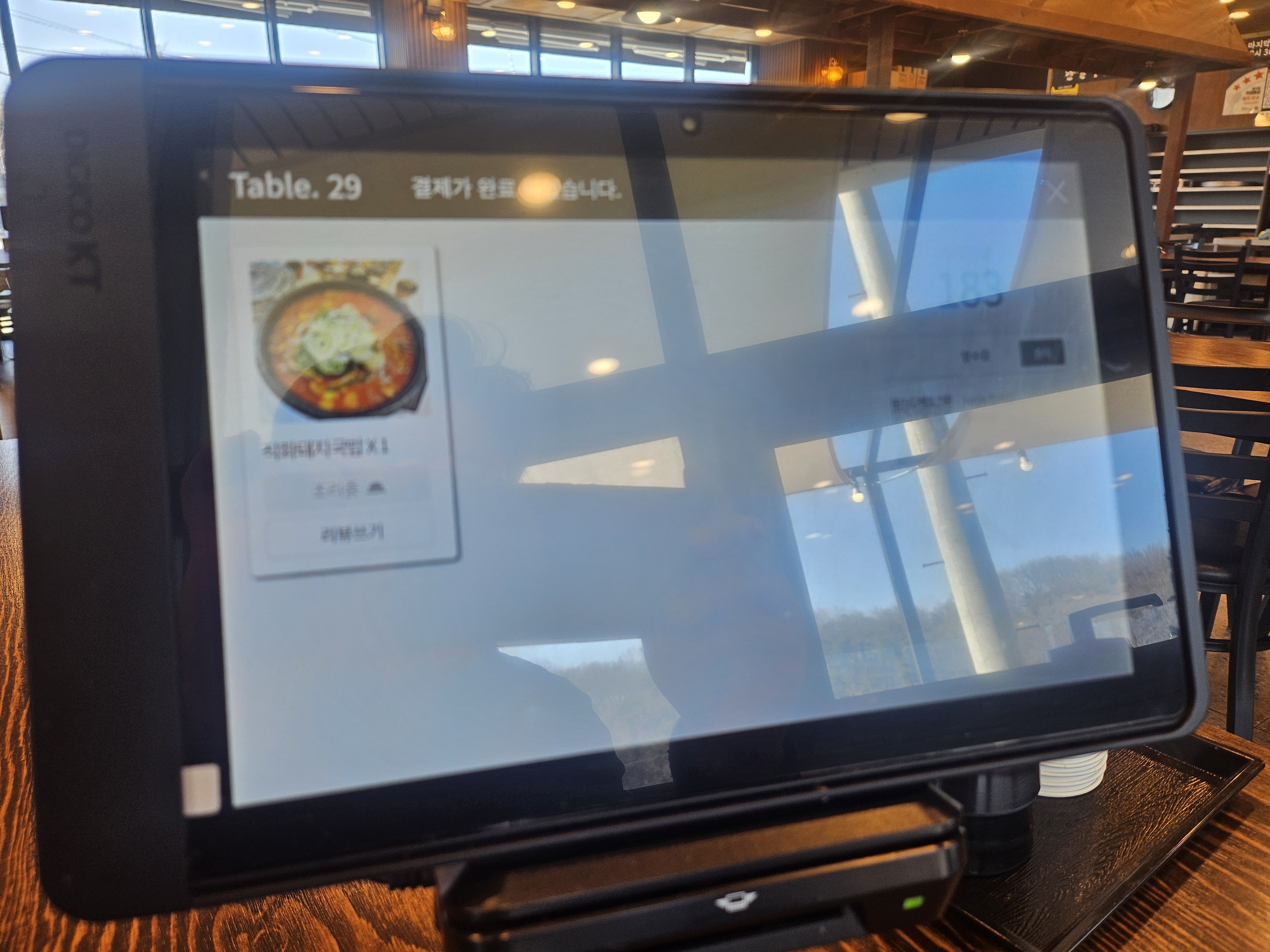 각 자리마다 배치돼 있는 테이블오더를 이용해서 주문하면 됩니다. 메뉴 중에 직화돼지국밥이라고 있는데 흔히 볼 수 있는 메뉴는 아닌데 가성비도 좋고 맛도 상당히 좋은 편이라서 제가 종종 먹는 메뉴입니다. 신메뉴에요.