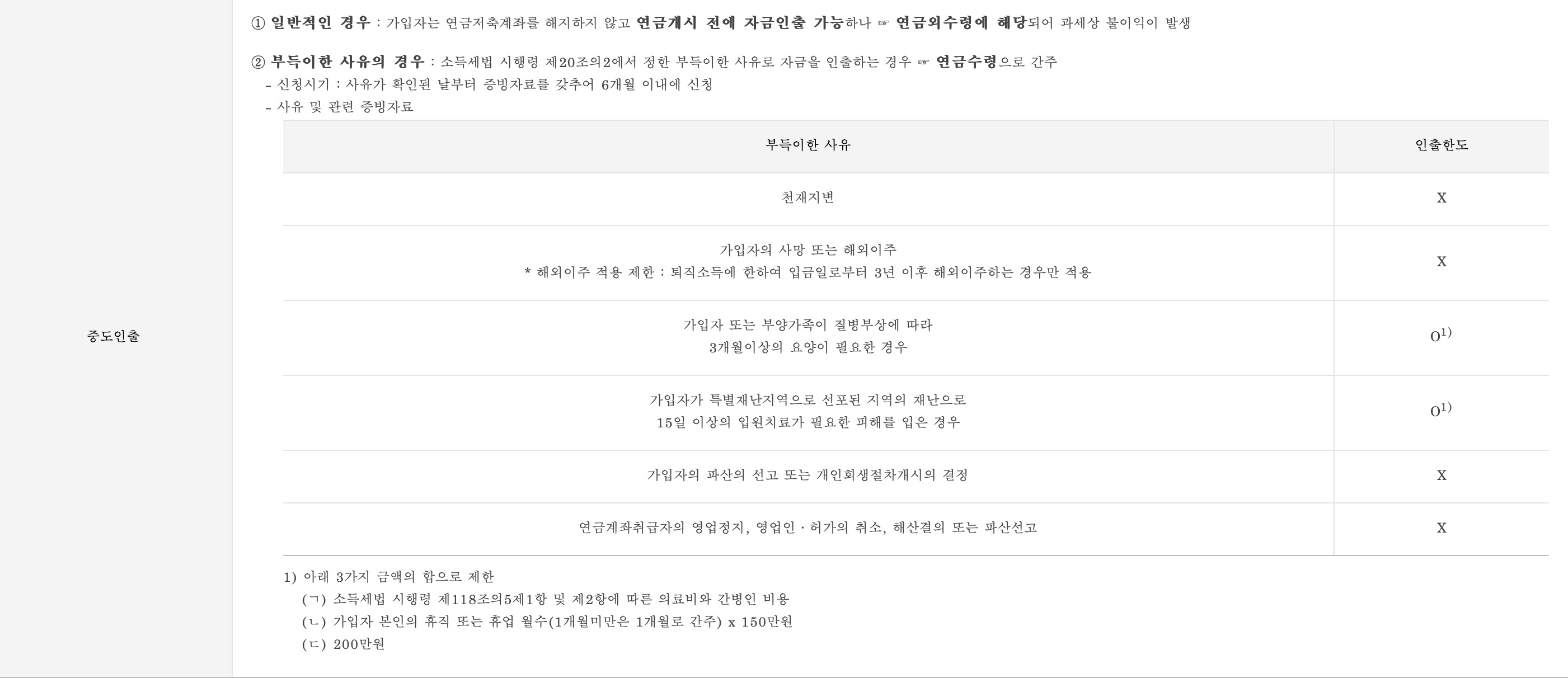 일반적인 경우, 즉, 개인요청에 의해 해지하게 되는 경우 연금개시 전에 자금 인출이 가능하지만, 연금외수령에 해당되어 과세상 불이익이 발생한다고 적혀있다. 그리고 또 재미있는점은 중도인출 부득이한 사유에 해당되어서 중도인출 하게될 경우 증빙자료를 갖고 지점에 내방해야만 해지가 가능한걸로 알고 있다. 일반적인 경우, 앱과 전화로도 가능하다.