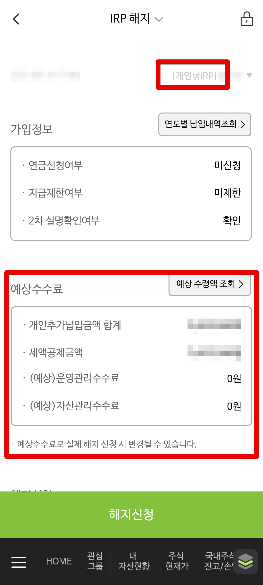 아파트 갈아타기를 위해 아파트 매수할 때 잔금이 필요해서 금융자산들을 여러개 정리하고 있다. 다음 타깃은 연금저축펀드와 퇴직연금 IRP 계좌였다. 개인연금저축펀드의 경우 중도인출이나 해지가 상대적으로 쉬운 편이지만, 퇴직연금 IRP 계좌의 경우 해지를 해야만 출금을 할 수 있고 두 계좌 모두 연금 실행 전 인출하게 되므로 세금 계산이 복잡하고 기타소득세 16.5%를 물어야하는 불이익이 있다.