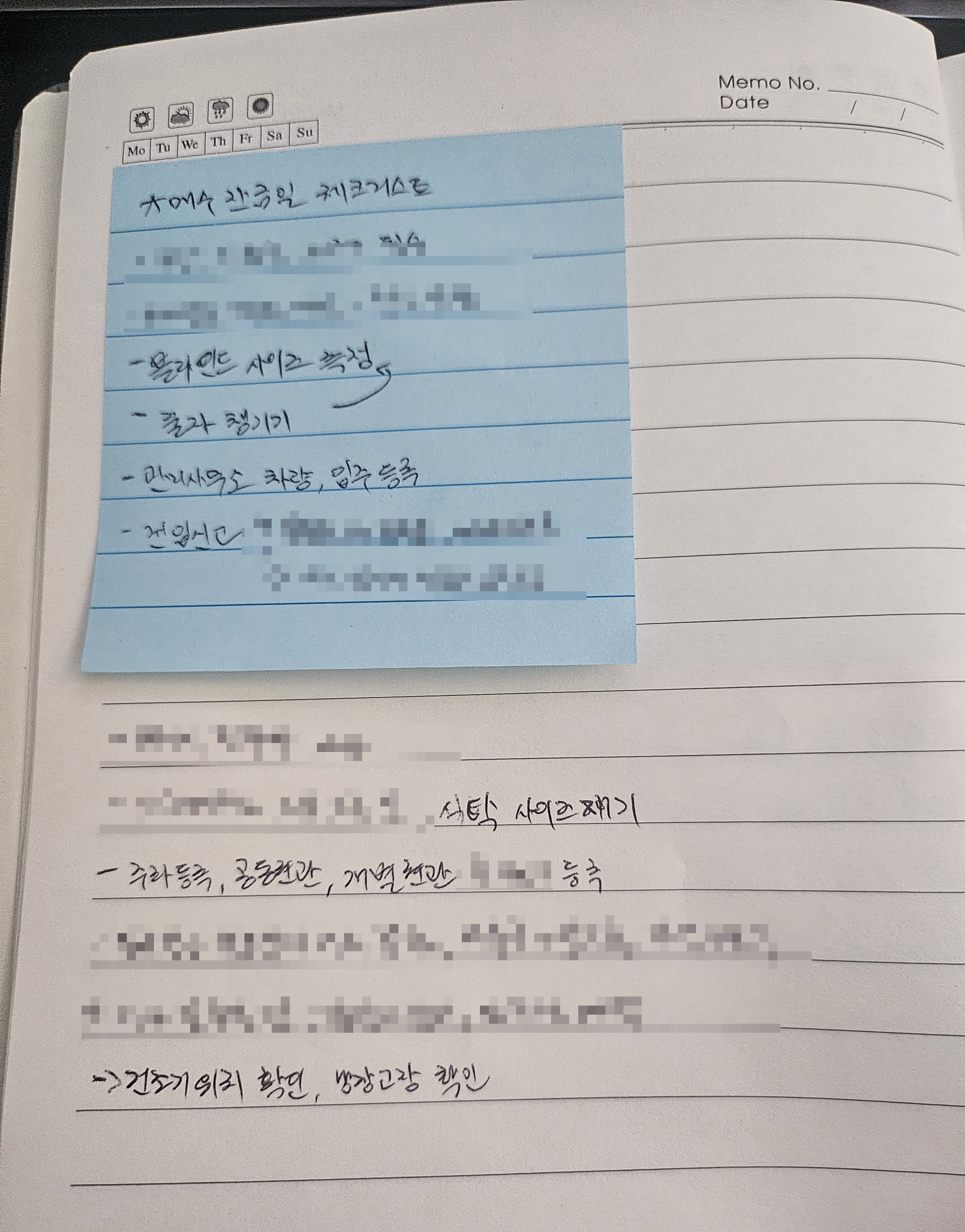 이사가기 전, 잔금 치르고나서 해야할 일들이 좀 생각난게 있었어서 평소에 메모해두었고, 다이어리를 들고 갔다. 이것저것 할 일이 있었는데 대표적인게 커튼 사이즈를 재는 일 같은게 있었다. 줄자도 챙겨갔다. 한꺼번에 생각나질 않아가지고 생각날 때 마다 다이어리에 기록해두었다. 나는 내 기억력을 믿지 않고 오로지 메모와 기록만 신뢰한다. 나는 생각하는 거의 모든걸 다 적어놓는 타입이다. 그래야 관리할 수 있고 비교분석할 수 있고 까먹지 않을 수 있다고 믿고 있다. 내가 '적어놓았다는 사실' 그 자체만 잊지 않으면 이 방식은 효과가 좋다.