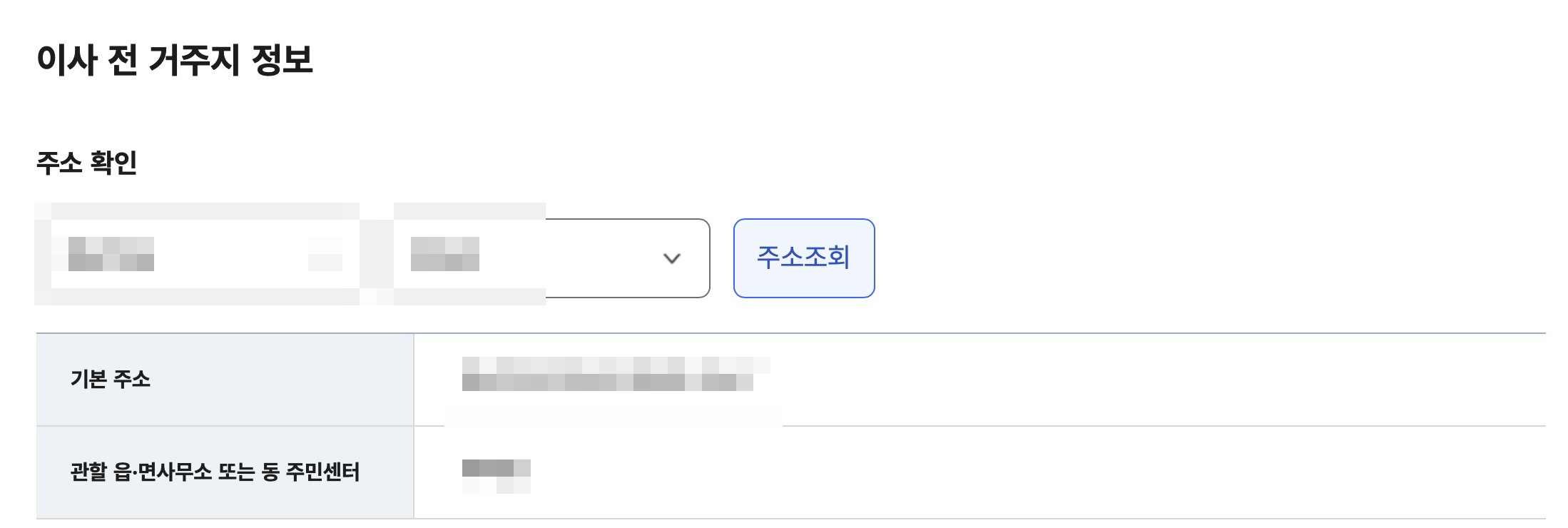 이사 전 거주지 정보 등 여러가지를 입력해준다.