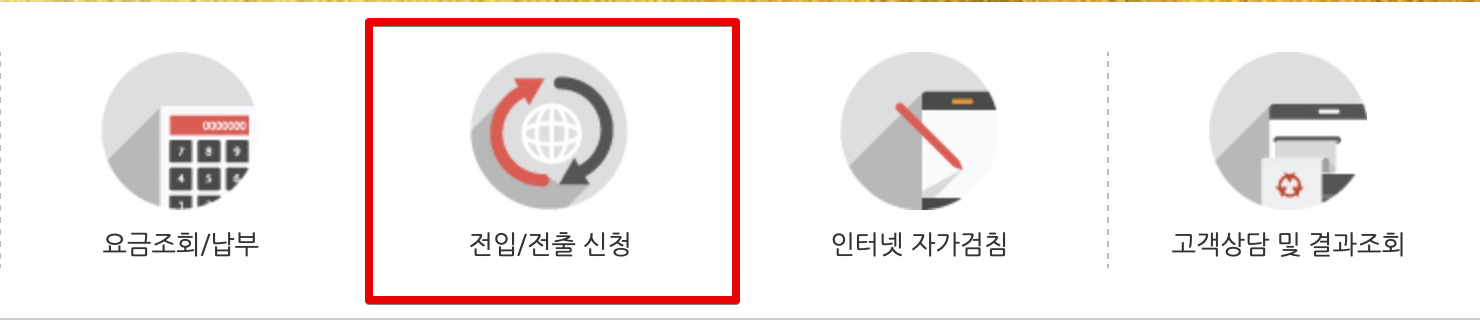 홈페이지 가입 후 해당 홈페이지에서 전입 또는 전출 신청 버튼을 이용해 전출 및 전입 신청을 진행한다. 이사나가는 집(전출)로 신청하고 이사 갈 집(전입)으로 신청하면 된다. 같은 지역에서 이사갈 경우 홈페이지 한 곳에서 한 번에 처리할 수 있다.