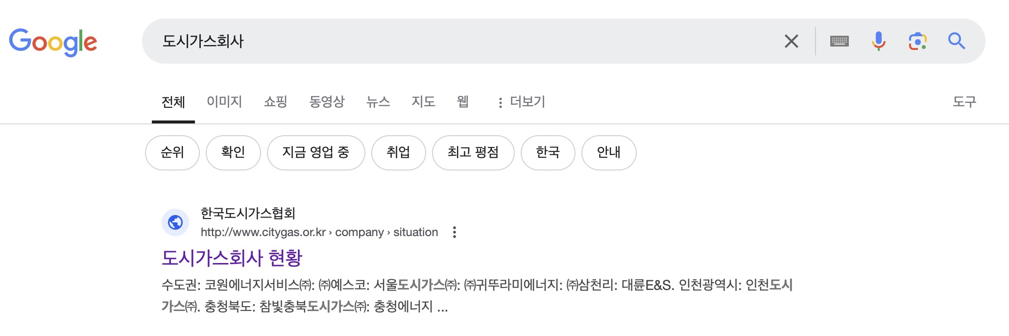 일단 지역별로 도시가스를 공급하는 회사가 다를 수 있으므로 해당 지역에 도시가스 회사 이름을 찾아봐야한다.