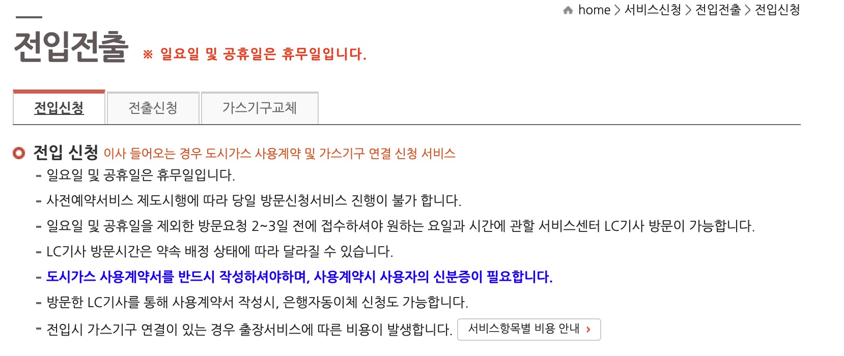 - 도시가스 전출 신청 방문요청시간 : 오전 일찍