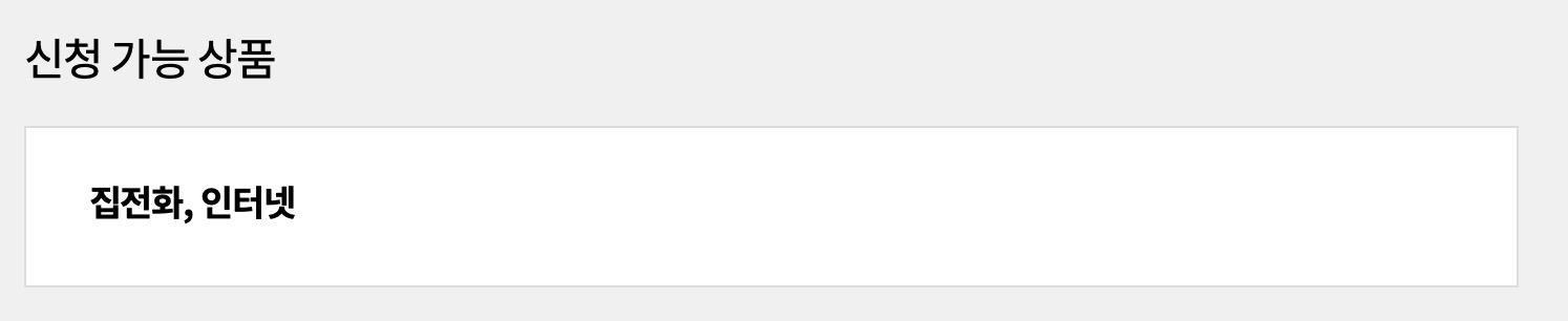 나의 경우 TV가 없으므로 집전화 또는 인터넷만 신청 가능하다고 돼 있고 실제로는 집전화도 없어서 인터넷만 신청 가능하다.