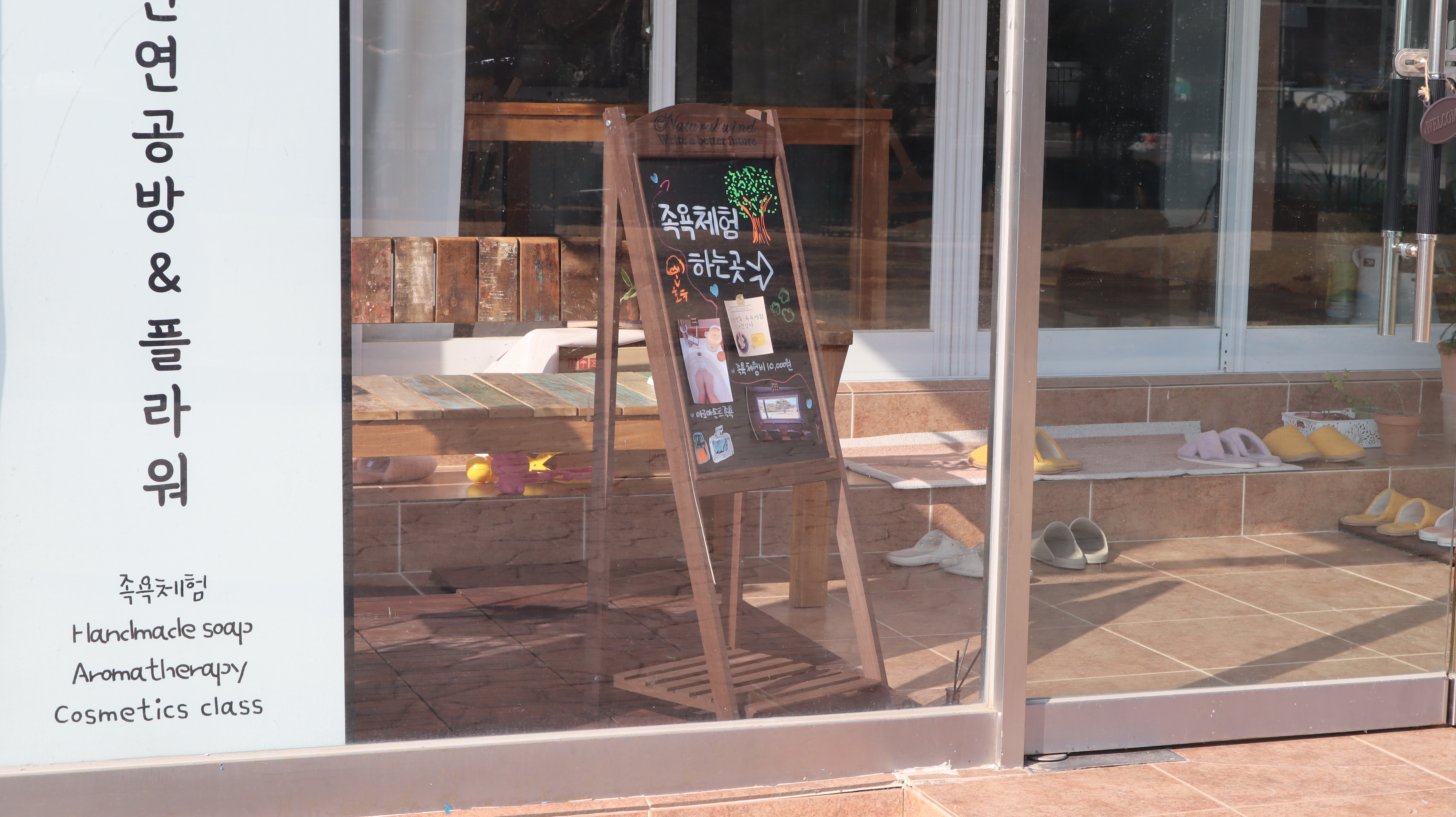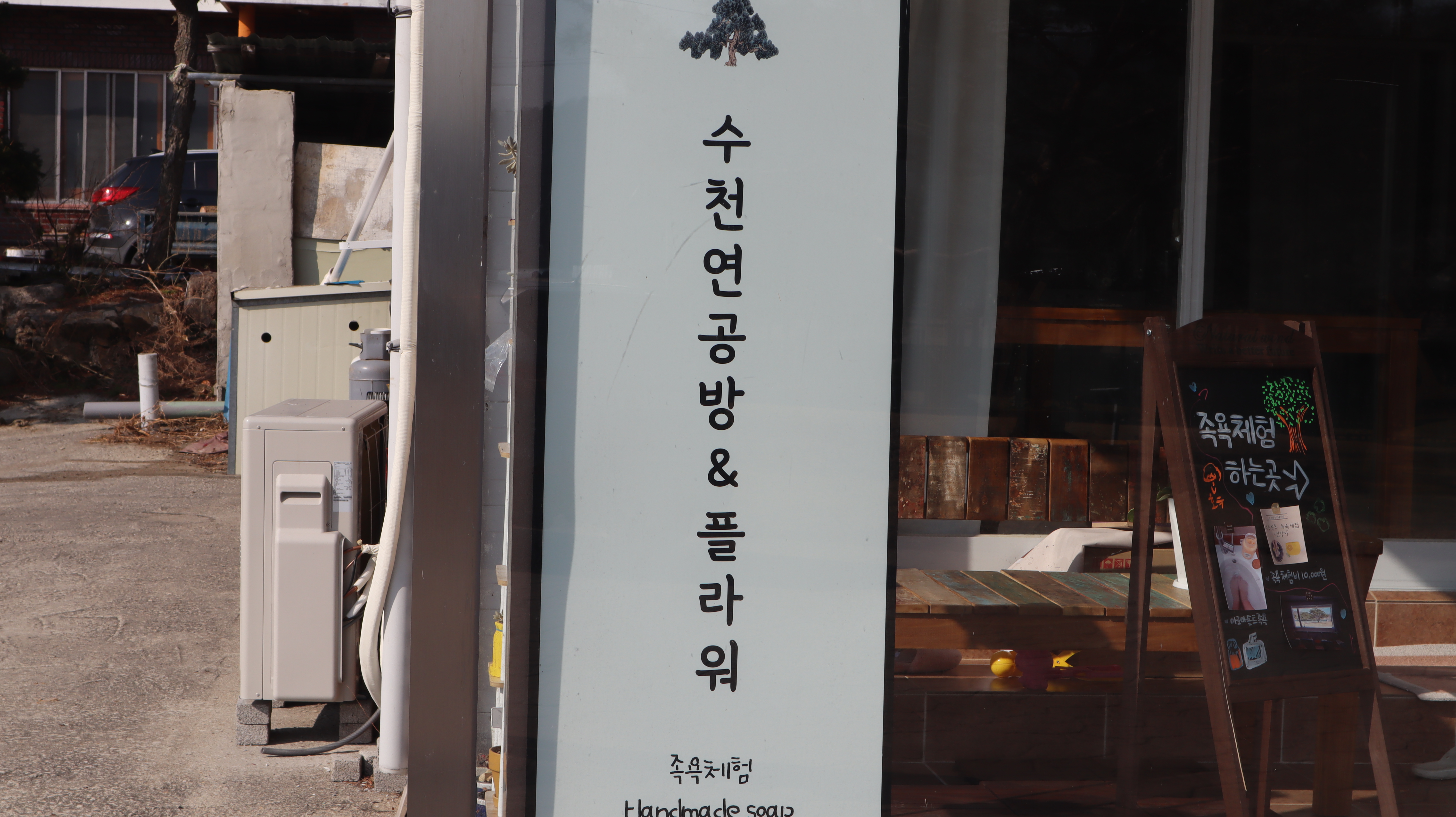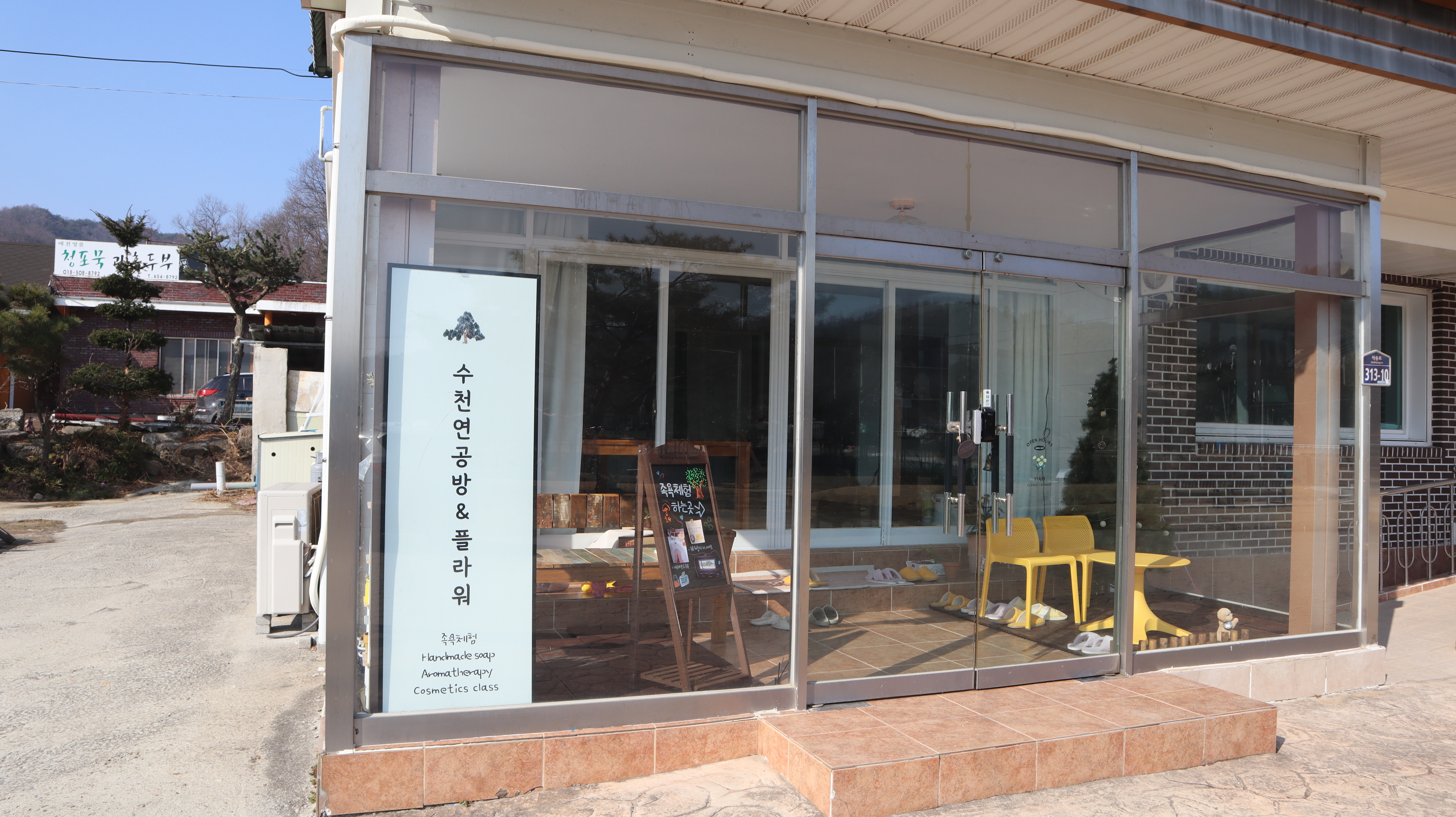 작년에 석송령에 방문했을 때 석송령 옆에 있는 건물에 공사를 하는 장면을 본 적이 있었는데요. 이번에 가보니 공방으로 바뀌어 있는 모습이었어요. 족욕체험도 가능하다고 적혀있네요. 석송령 가실분들은 한 번 방문해보셔도 좋을 것 같습니다.