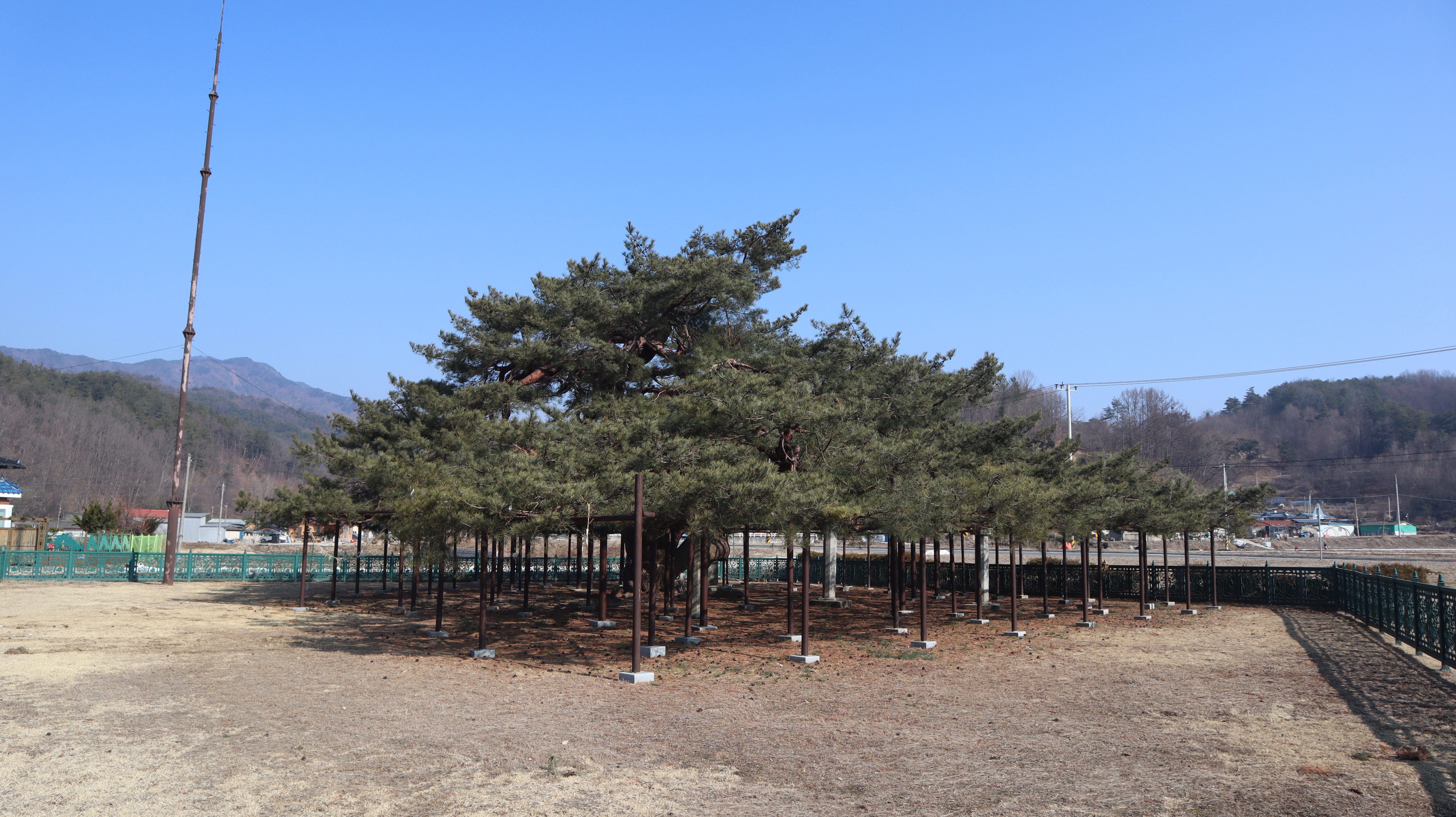 석송령 주변은 산맥이 아름답고 잔디밭도 예쁜 곳인데 이른 봄에 방문했던터라 아직은 초록빛이 아닌 갈색빛 땅을 보여주고 있습니다.