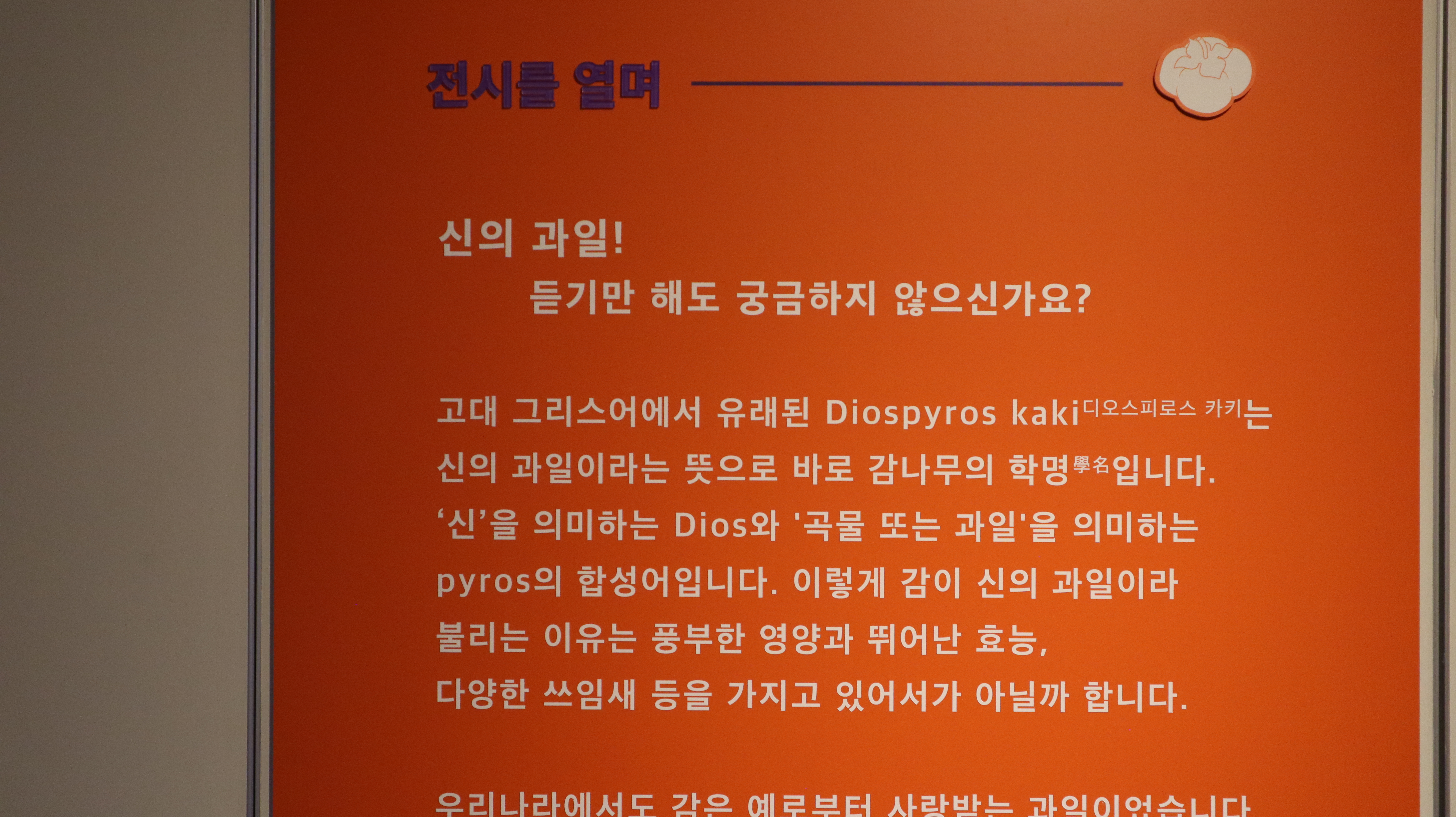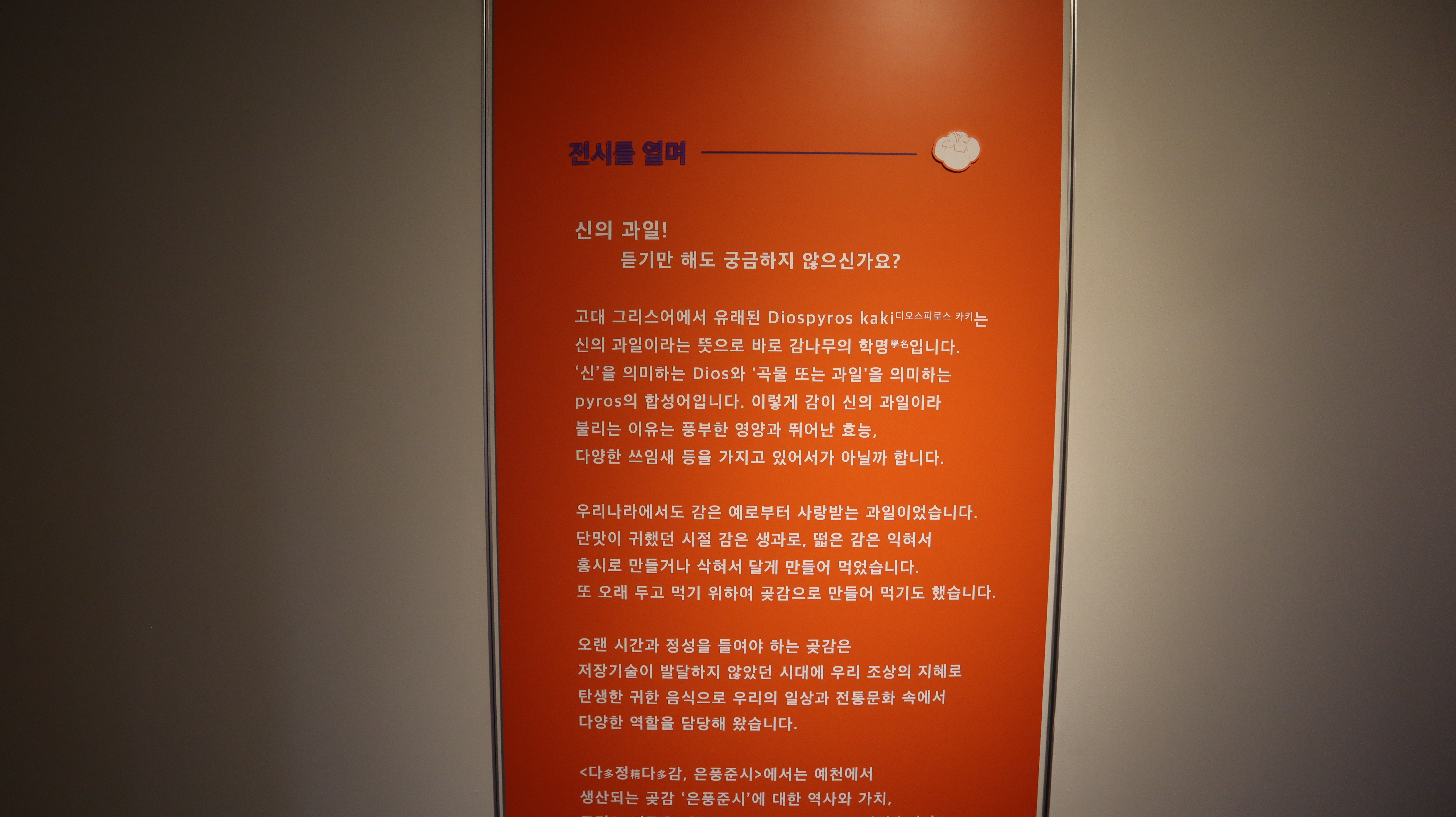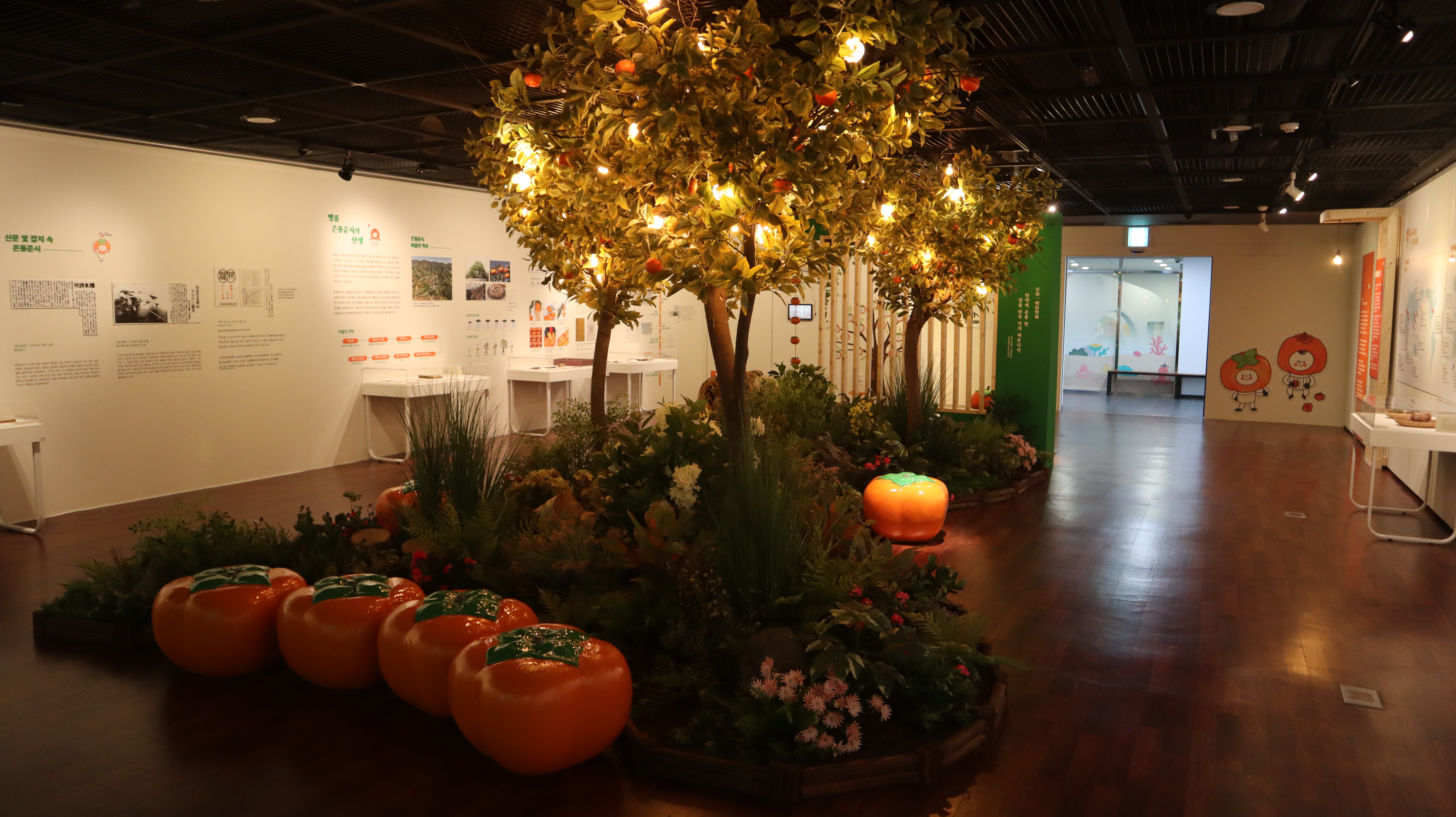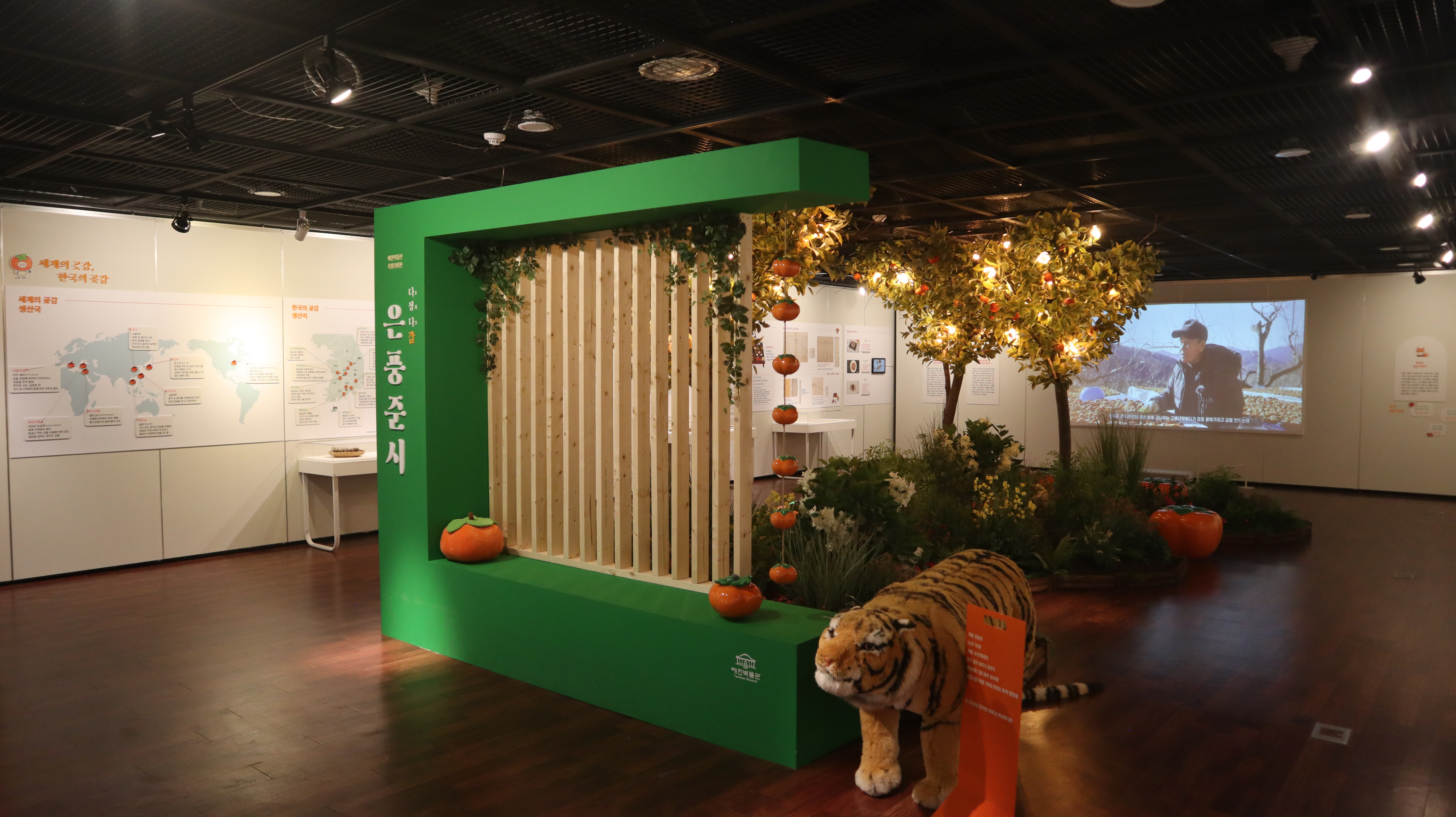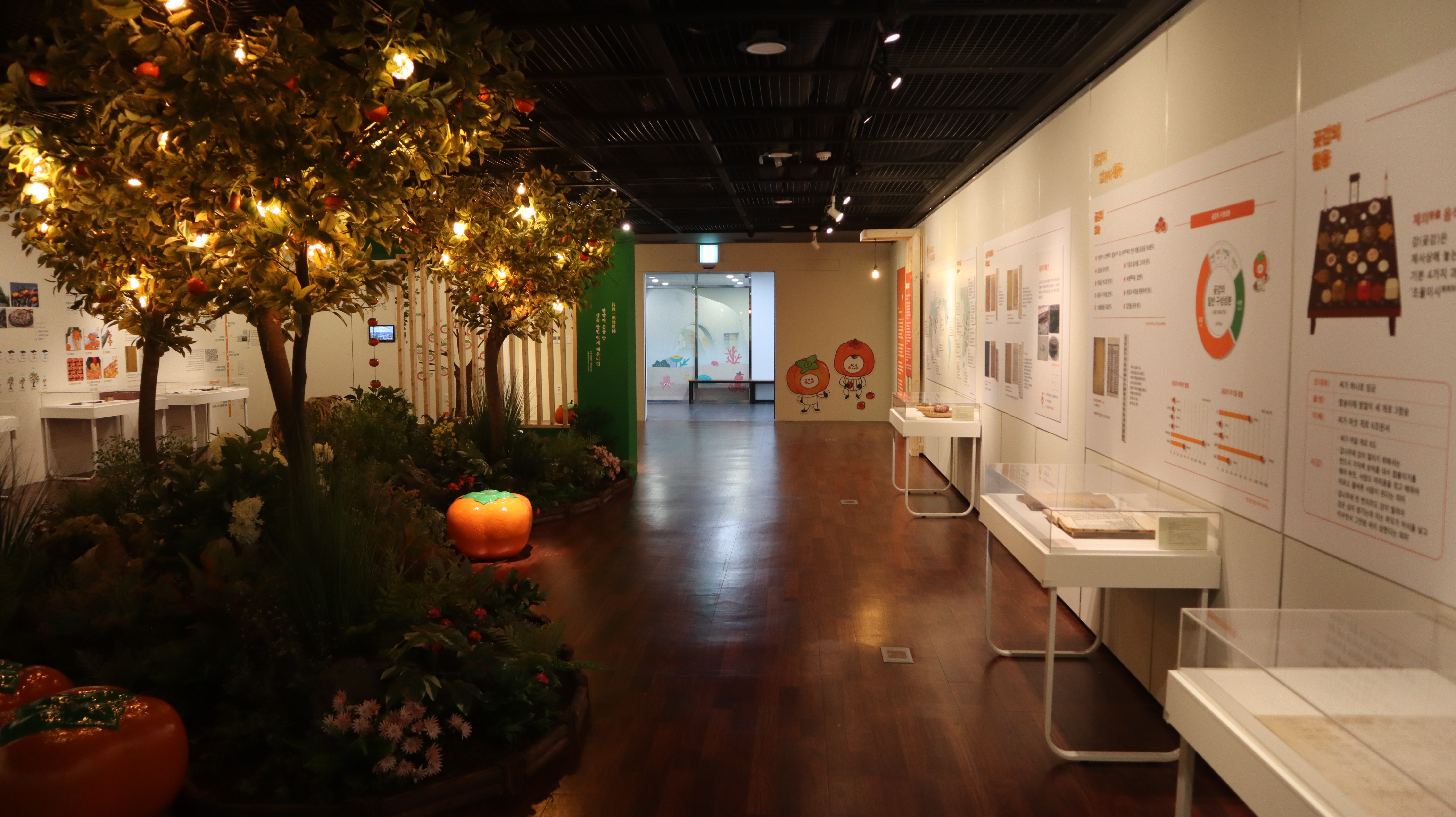 감 나무와 조명, 감 모양 의자를 만들어서 전시실 가운데를 예쁘게 꾸며둔게 있었는데 요즘 트렌드에 맞는 전시였던 것 같습니다.