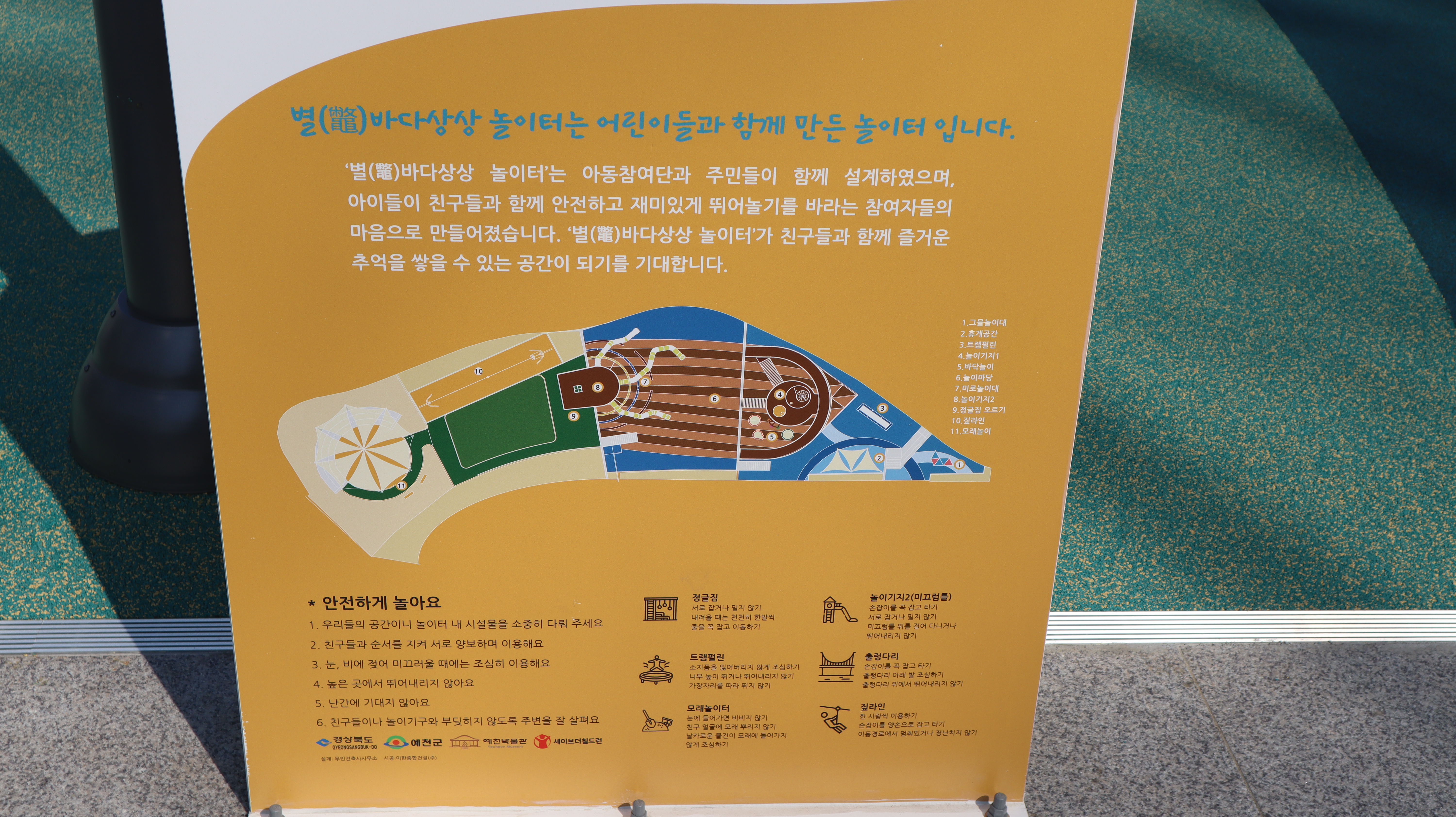 예천박물관 주변을 둘러보다가 우연하게 별 바다상상 놀이터라는 곳을 발견하게 되었는데 새로 조성된 놀이터처럼 보였어요. 하지만 이 날에는 가족분들이 많이 놀이시설을 이용하고 있어서 사진은 제대로 촬영하기 어려웠고 다음번에 조용할 때 다시 방문해서 둘러볼 예정입니다.