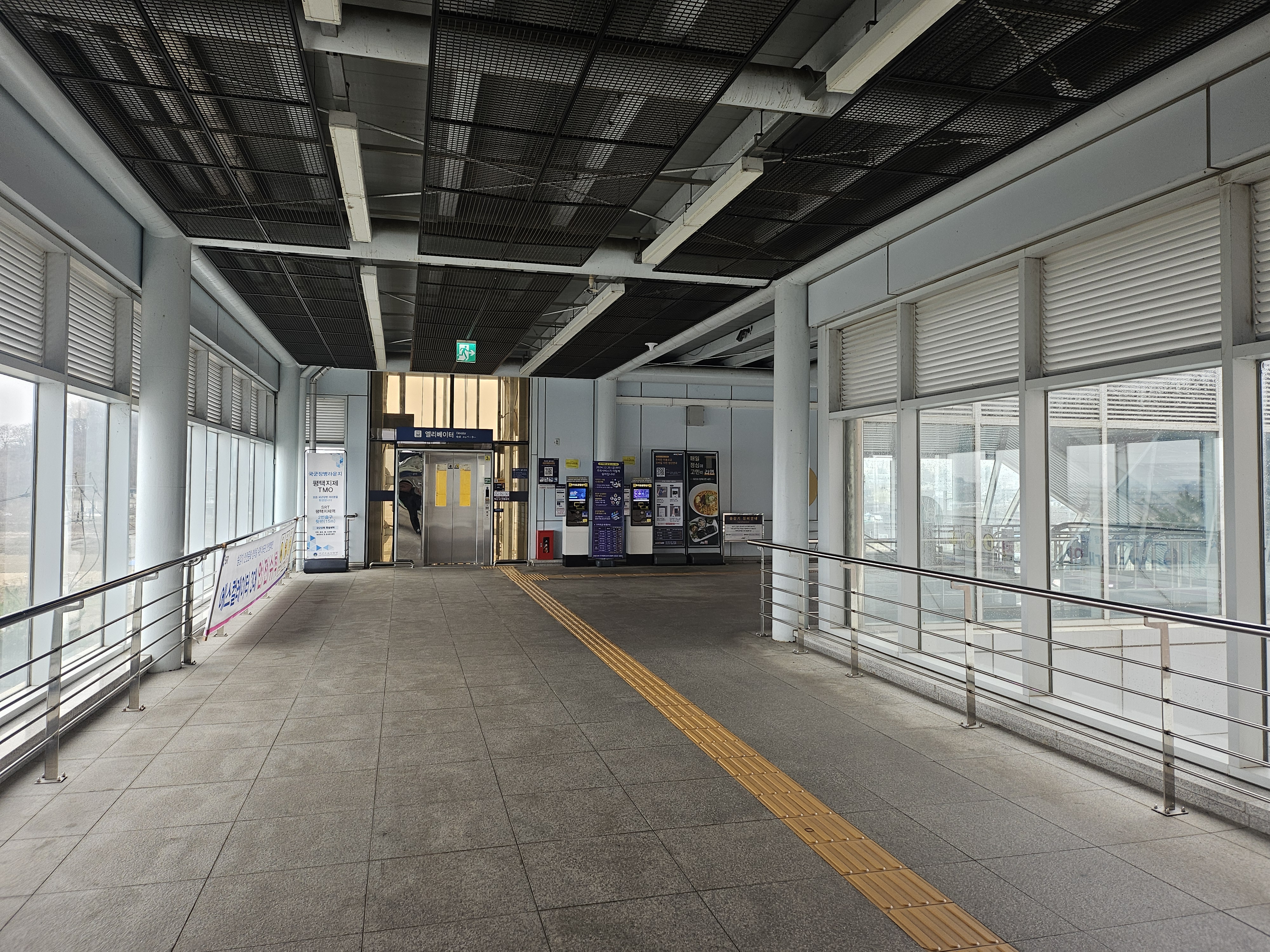 반대쪽으로 가게되면 평택지제역을 빠져나가는 길이 있고 에스컬레이터가 운행된다. 밖으로 나가면 제일 첫번째 사진에서 봤던 것처럼 평택지제역 간판이 있고 그 바로 앞에 흡연실이 있어서 밖으로 나가야 흡연실은 이용이 가능하다. 마찬가지로 여기로 나가면 평택지제역 주차장이 있다.
