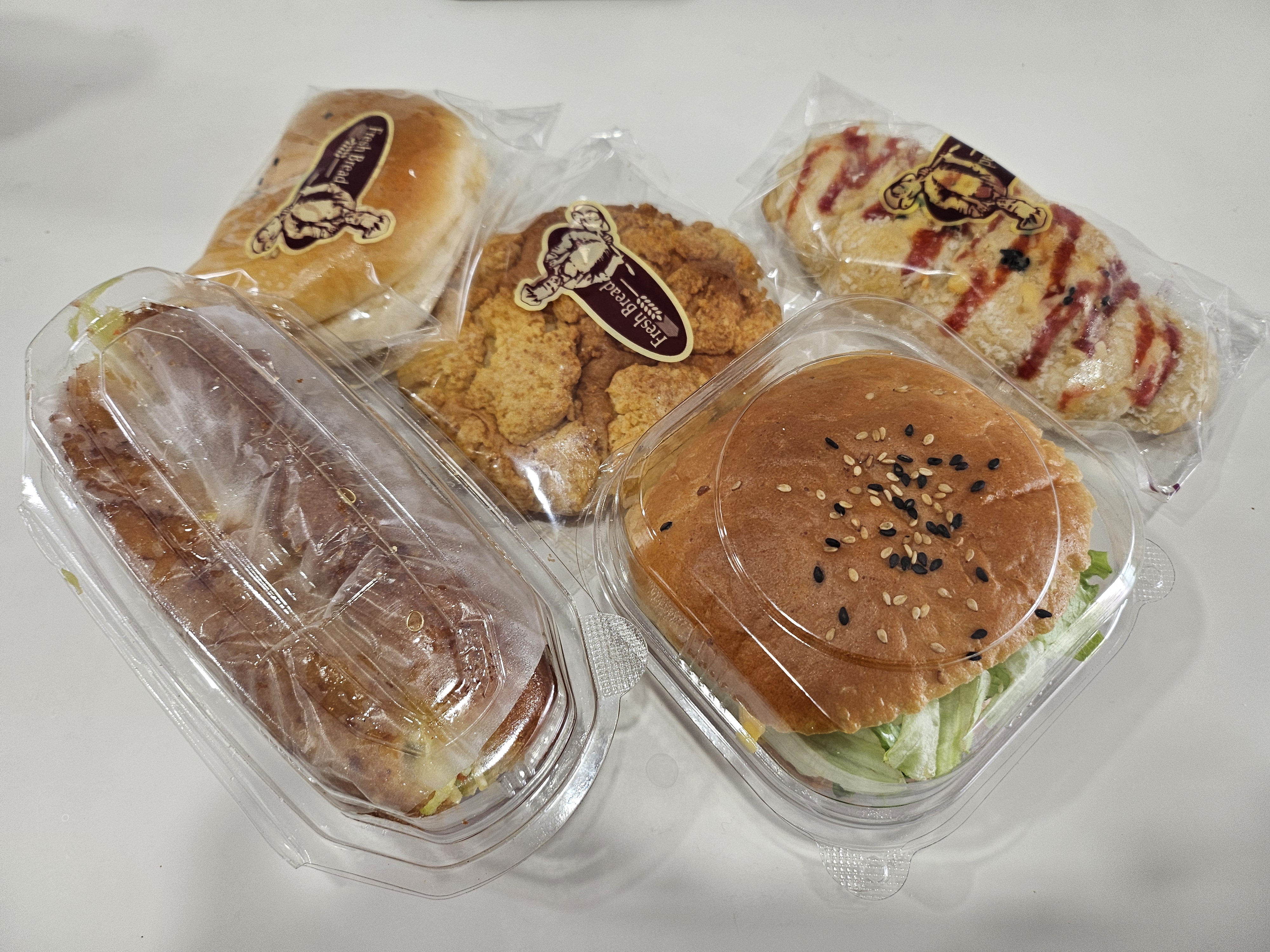 수제햄버거, 사라다빵, 슈크림빵, 소보로, 치즈소시지 핫도그 이렇게 골라보았다.