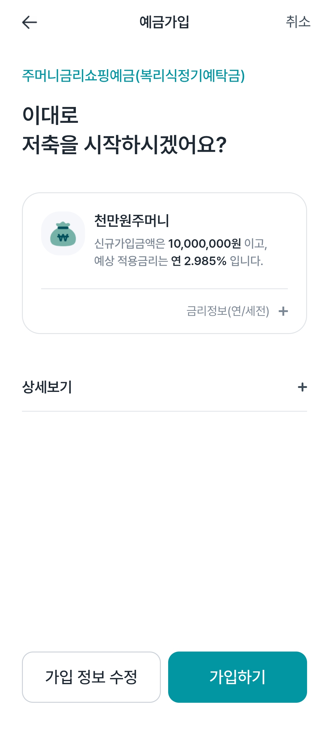 이제 가입 진행해준다. 1000만원 단위로 3개로 나눠서 가입하면 된다.