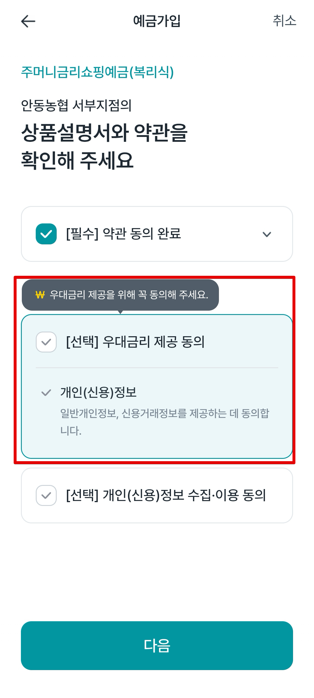 우대금리를 받으려면 개인정보 이용 동의를 해야하는데 이런거에 민감한 분들은 제외해도 관계없겠다. 나는 관계없다는 마인드라서 동의해주고 우대금리를 챙겼다.