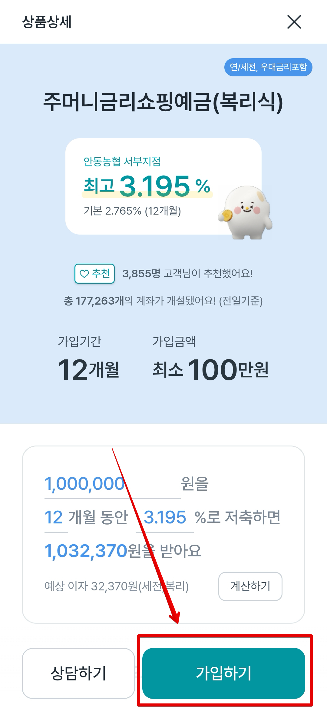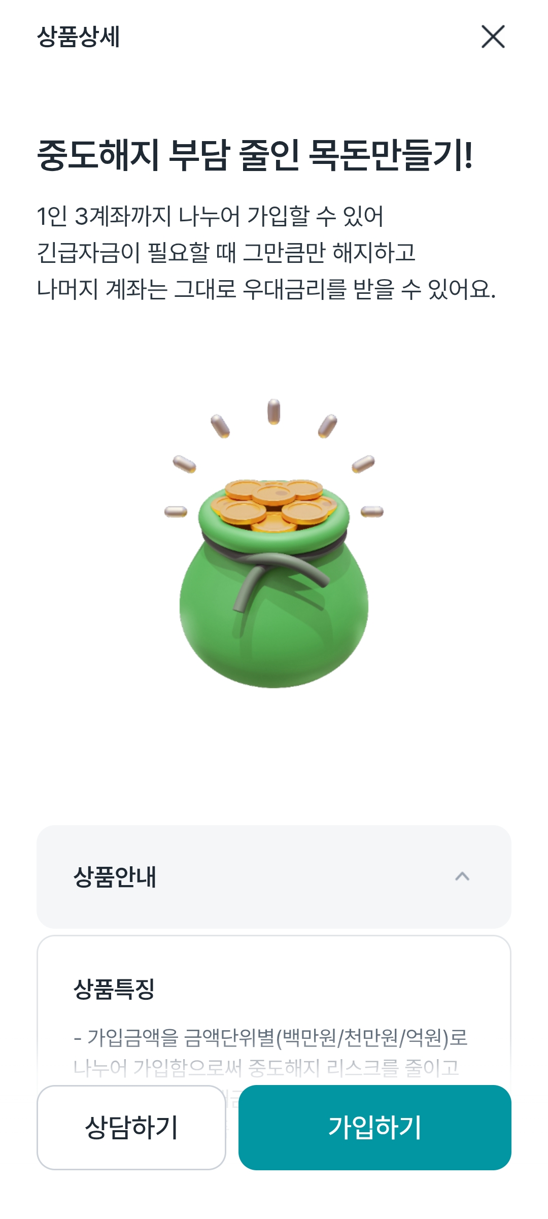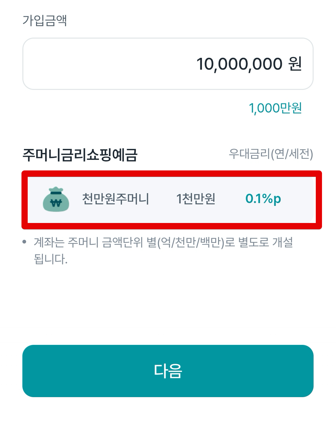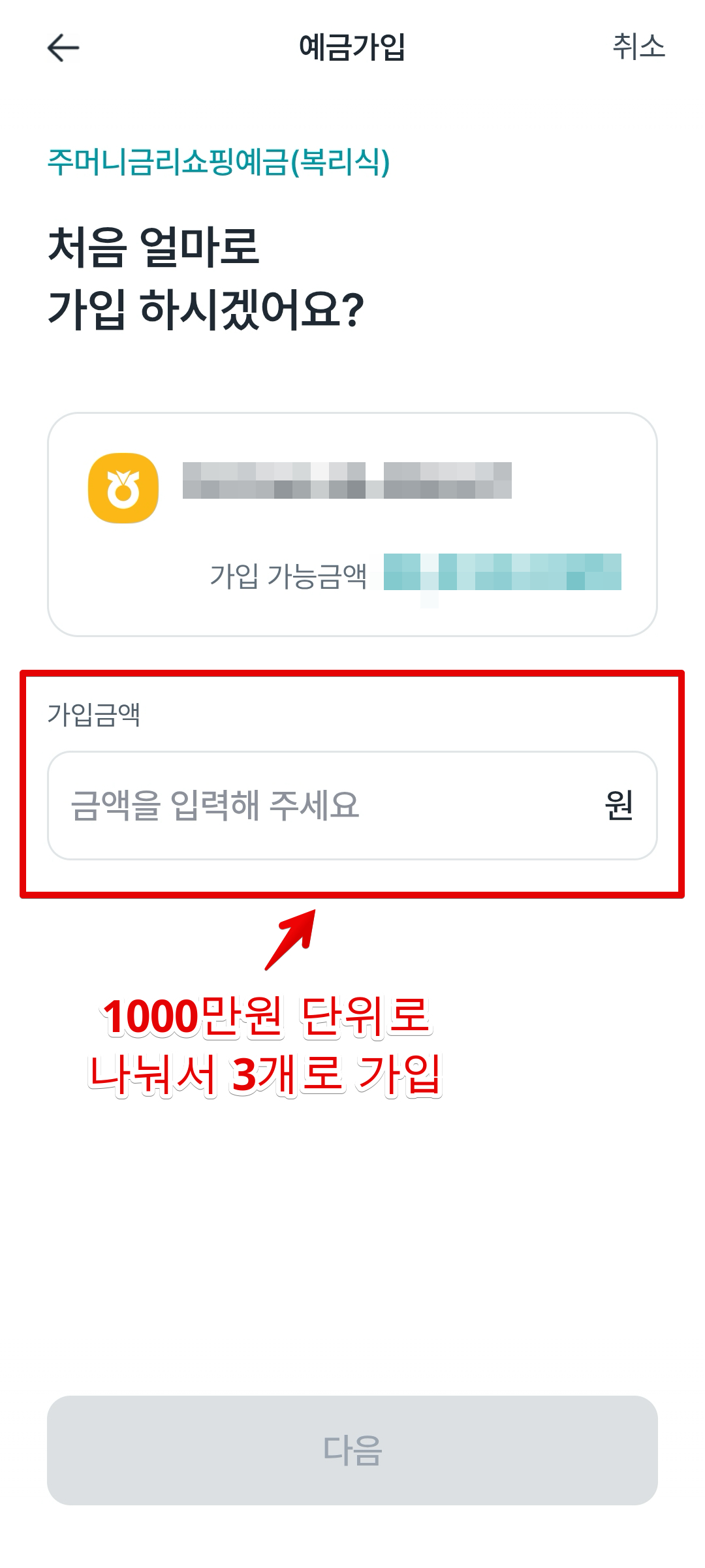 이제 가입 진행해준다. 1000만원 단위로 3개로 나눠서 가입하면 된다.