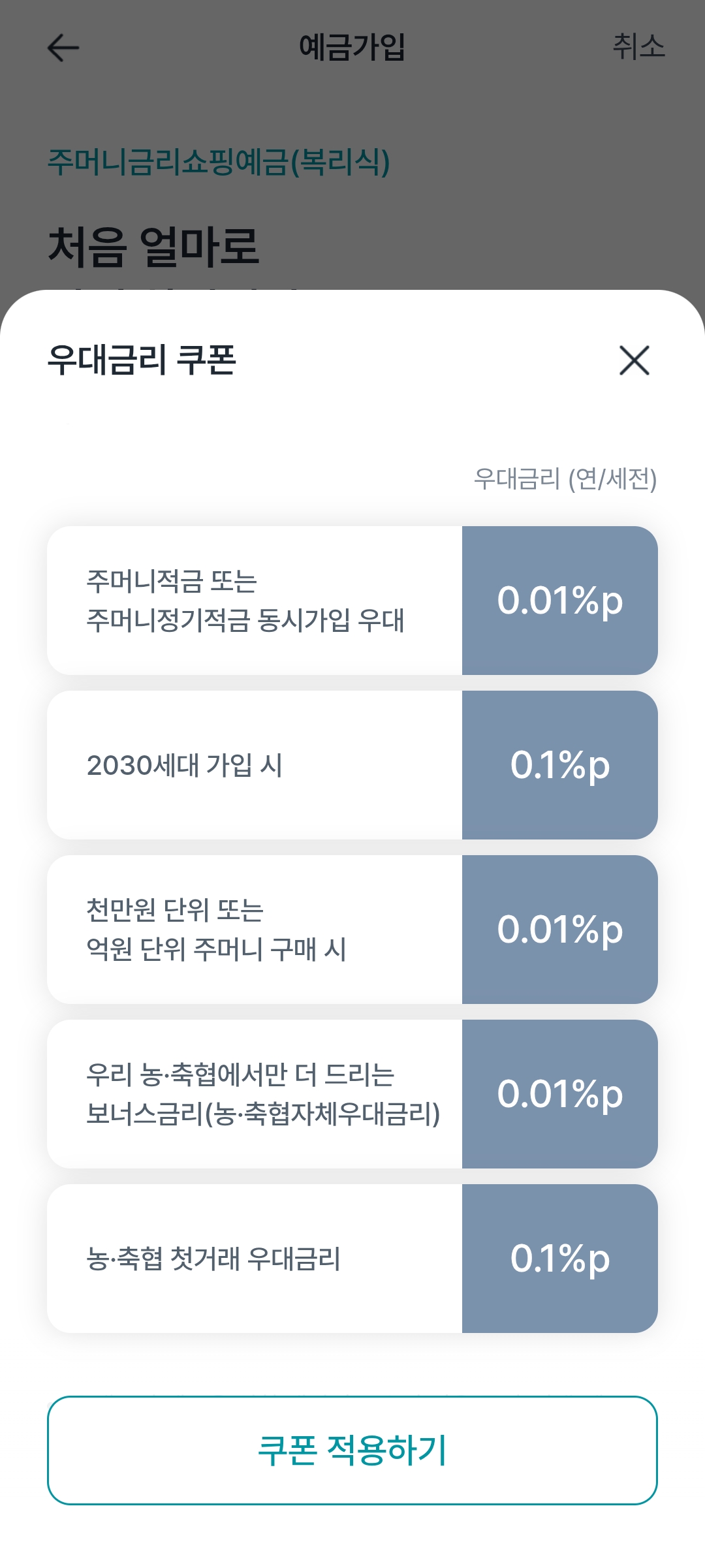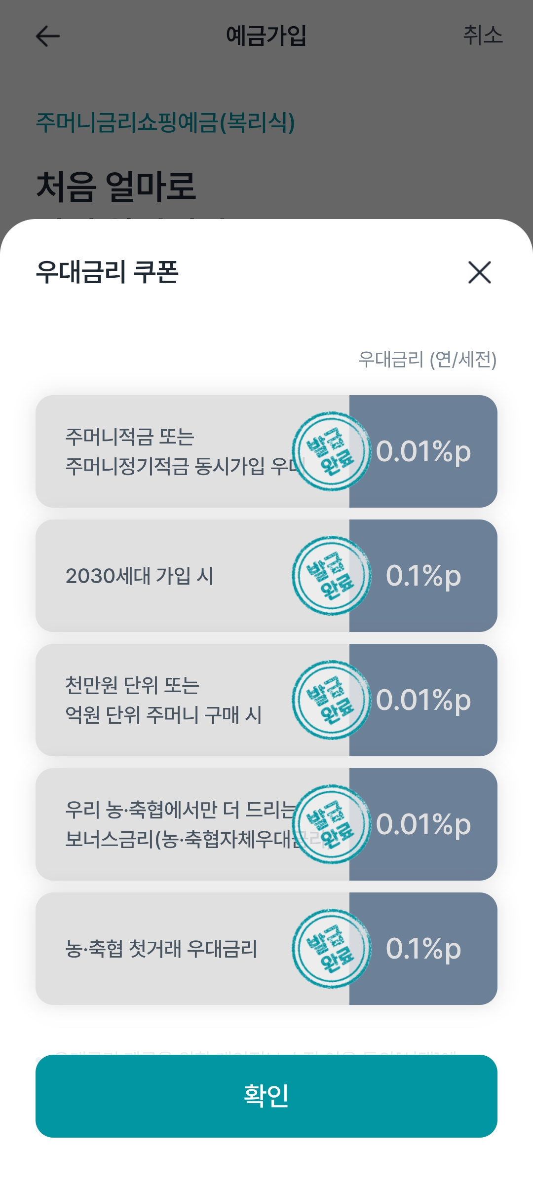 중간에 우대금리 쿠폰을 준다고하면 전체를 일단은 다 받아준다.