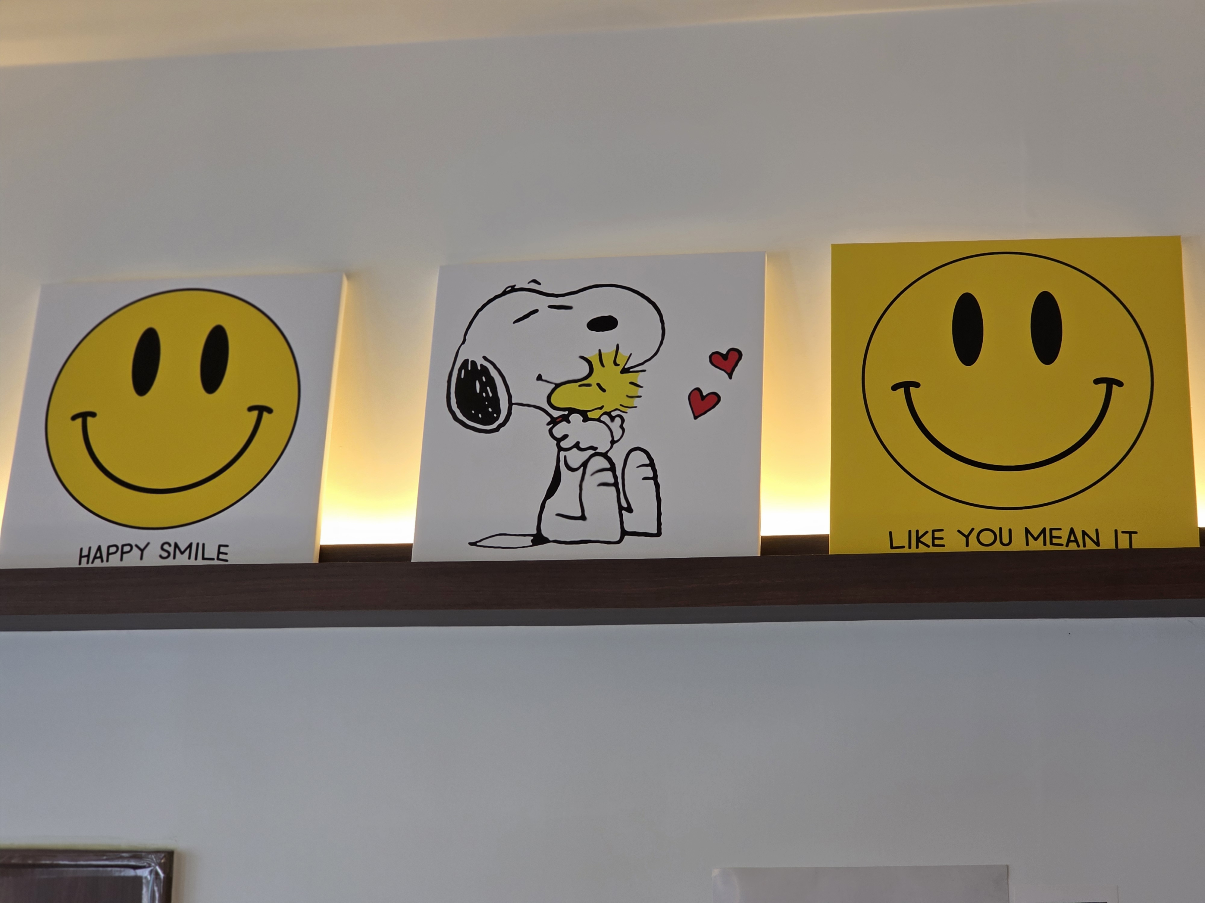 가게 내부 곳곳에는 그림이나 그래픽, 소품들로 아기자기하게 꾸며져 있었는데 사장님의 센스가 엿보이는 배치였어요. 전체적으로 무난한 스타일의 가게 분위기였습니다.