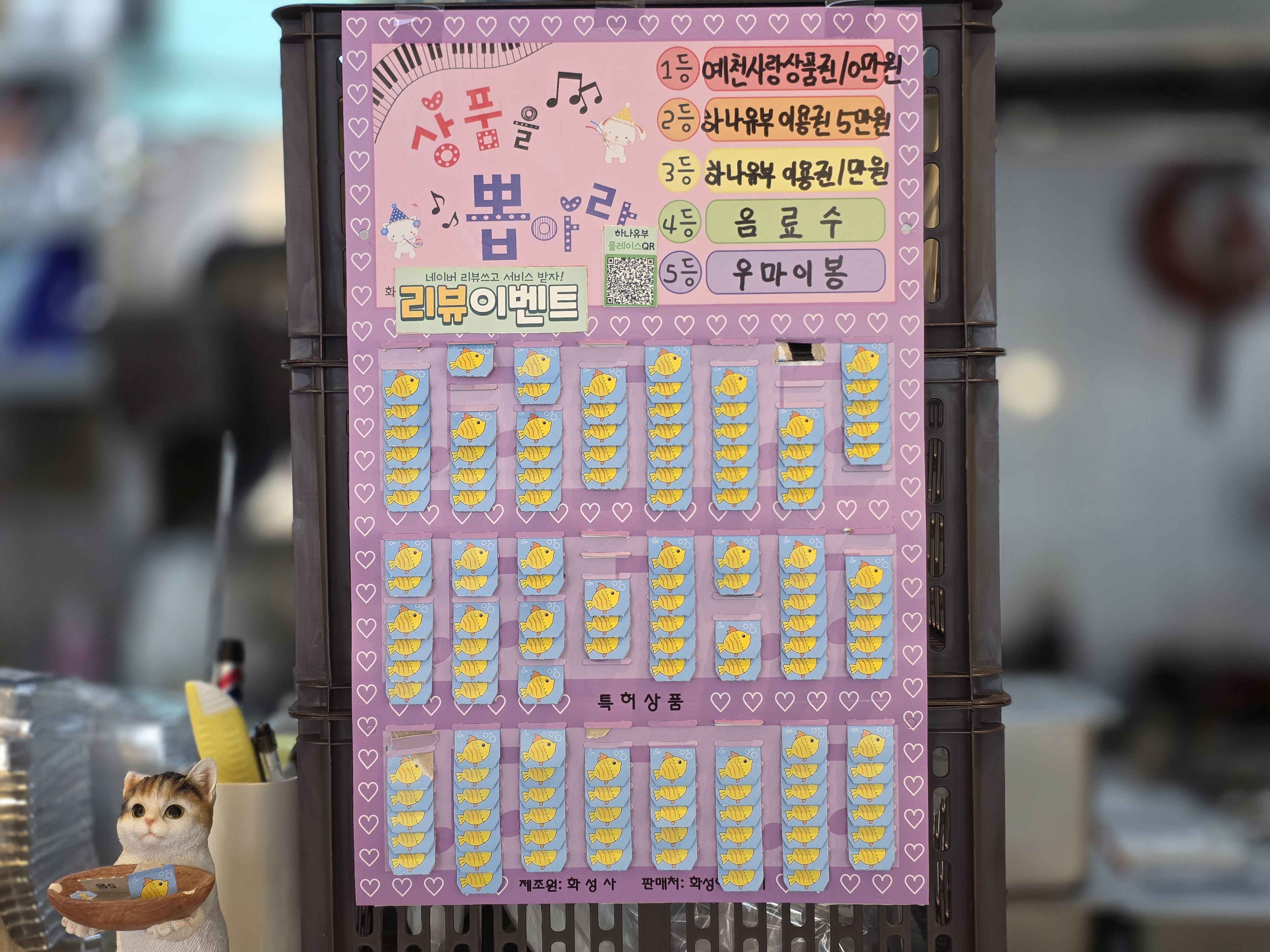 메뉴판 디자인이 괜찮게 나와있어서 선택에 크게 어려움이 없었고요. 한쪽에서는 옛날 제가 어릴 때 학교 앞 문방구에서 자주하던 뽑기 같은게 있어서 재미있게 참여해보는 것도 좋은 경험일 것 같아요. 요즘 가게들에서는 이런식의 뽑기 이벤트나 돌림판 이벤트 같은걸 자주 볼 수 있더라고요!