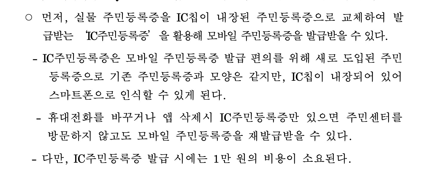 - 처음에 한 번만 IC 주민등록증으로 발급받으면, 이후 스마트폰 바뀌어도 IC 인식시켜서 계속 이용이 가능