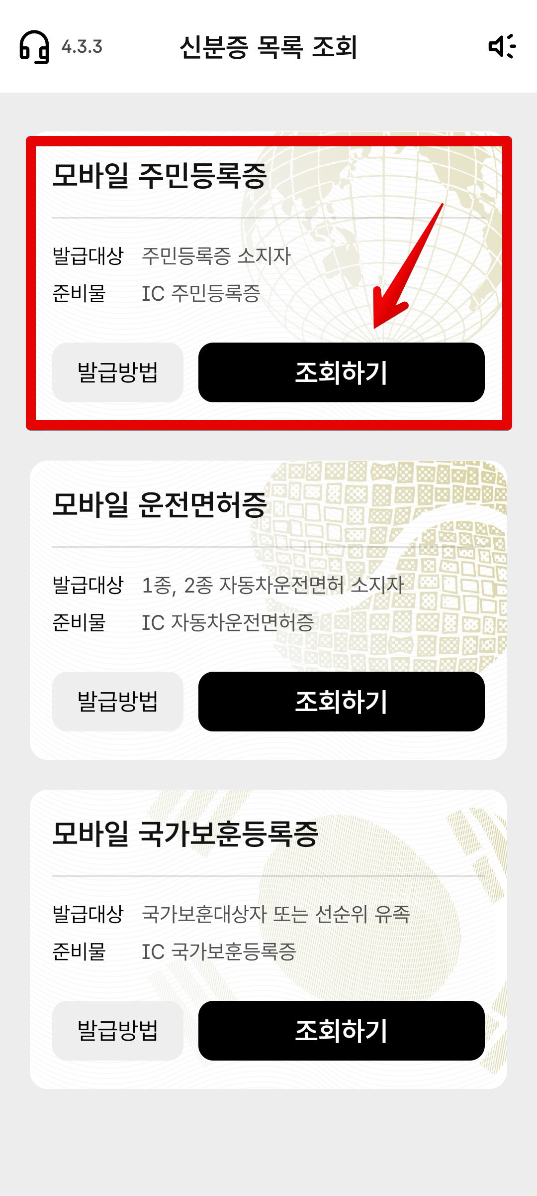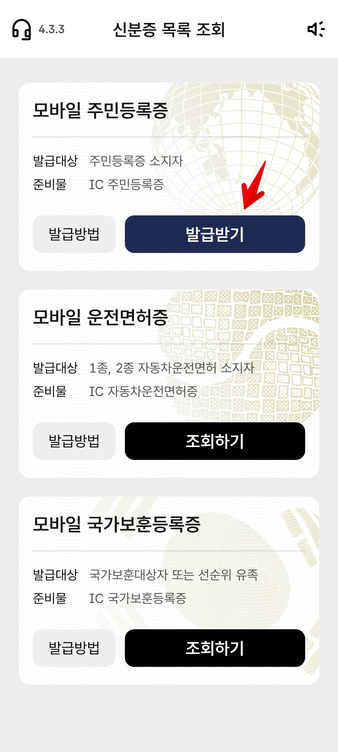 IC 주민등록증 실물을 수령한 상태에서 시작한다.