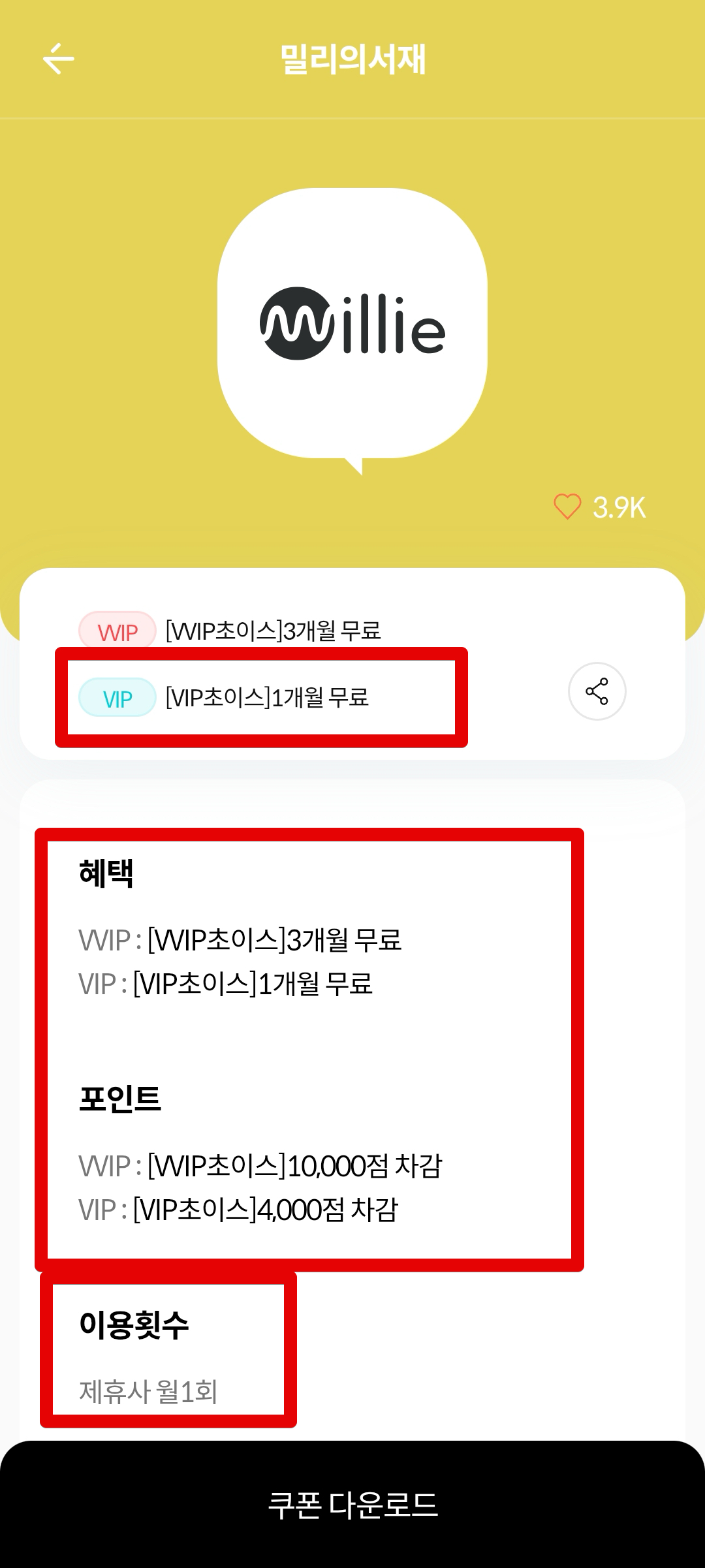 VIP 초이스 혜택에서는 1개월 무료를 받을 수 있다. VVIP는 3개월 무료짜리가 제공된다. VIP 초이스에서는 멤버십 포인트 4000점을 차감하게 된다. 어차피 남는거다.