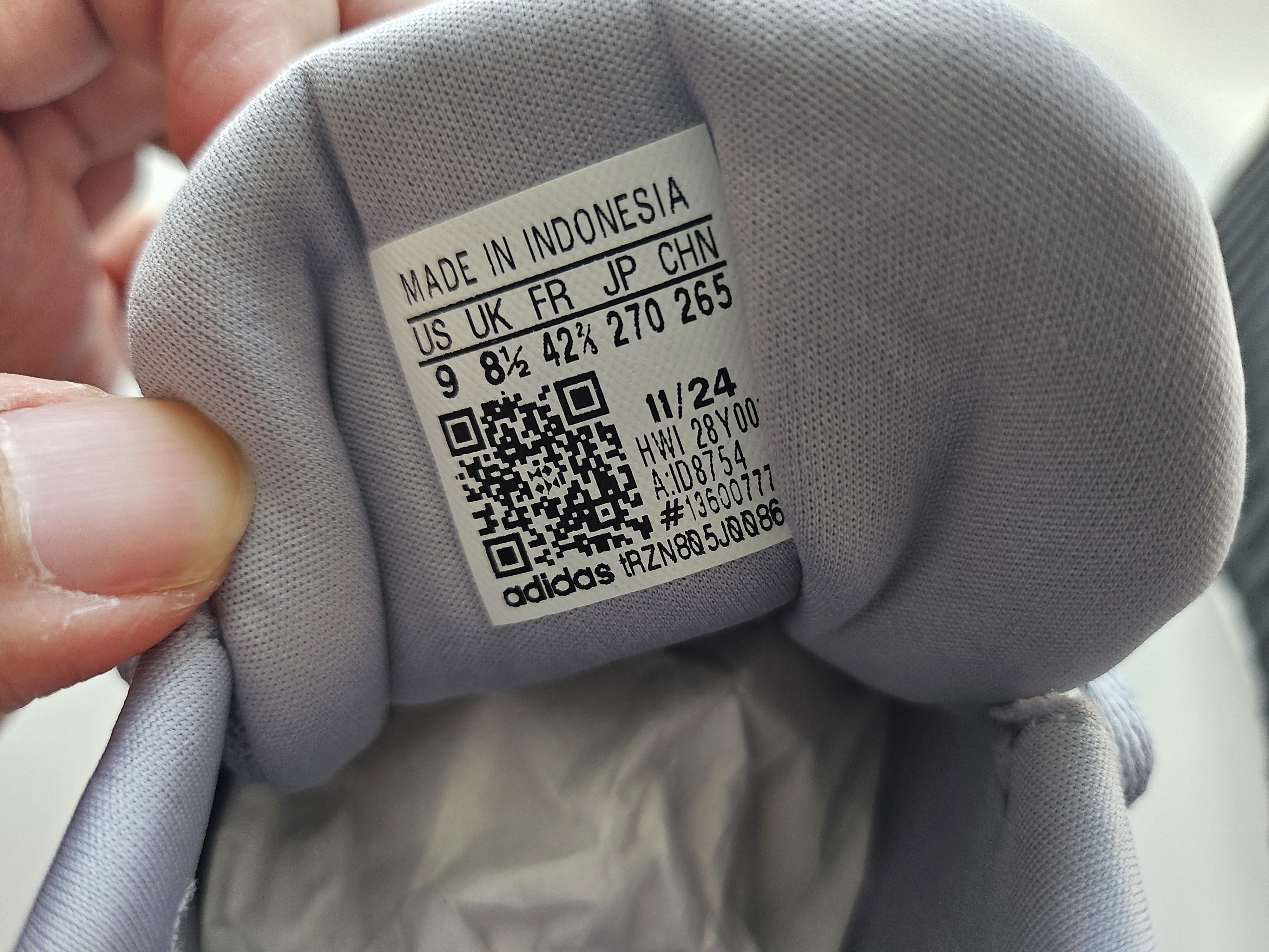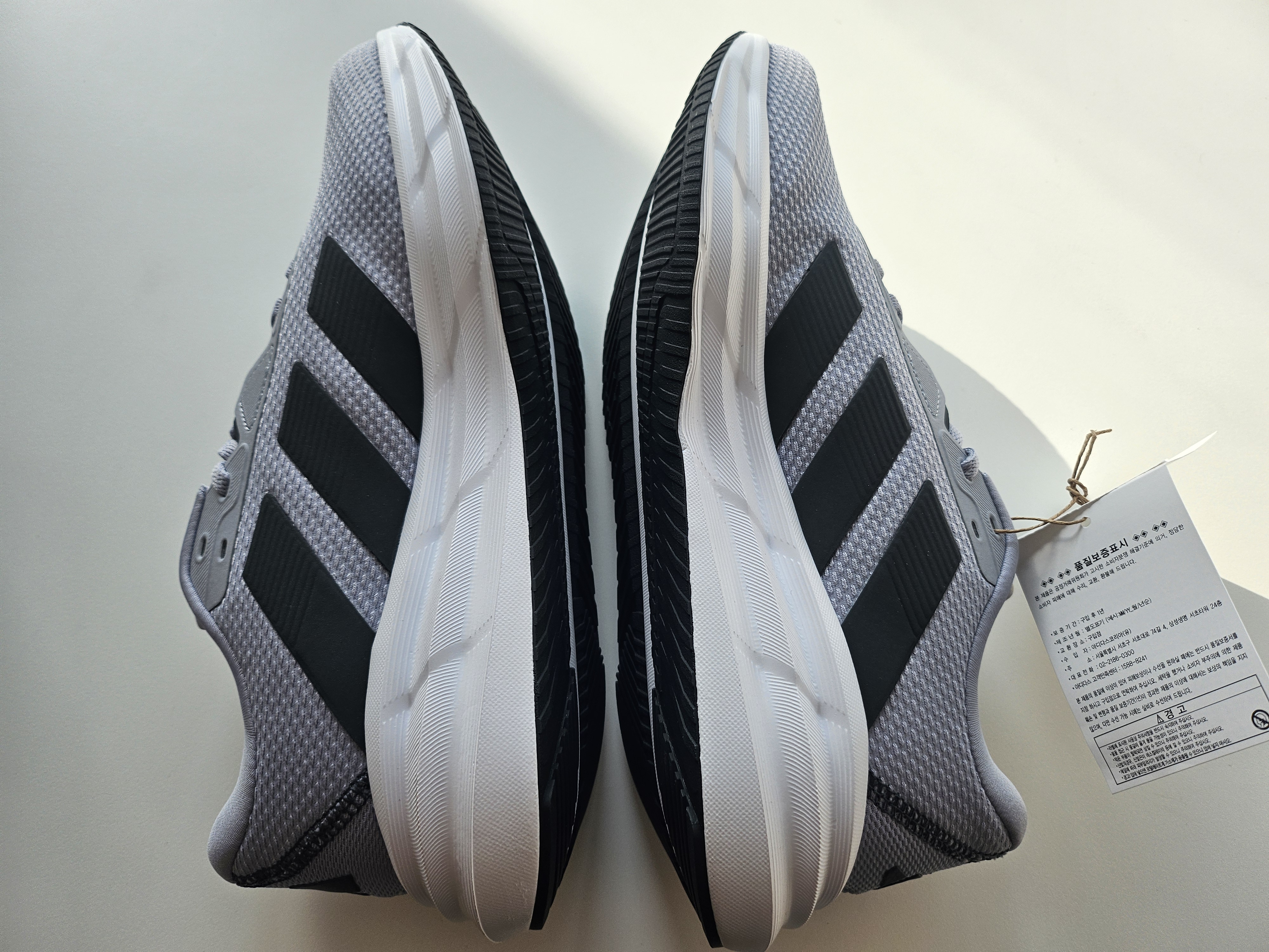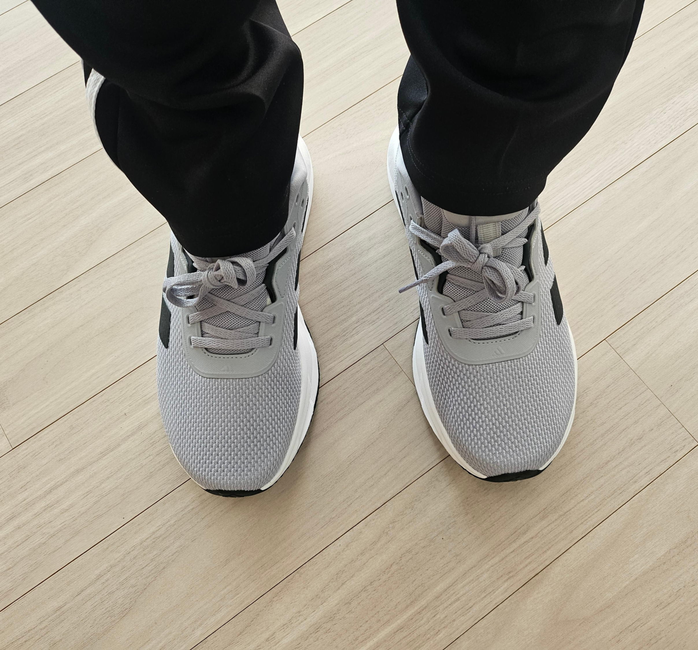 신어보니까 엄지발가락쪽 앞코 아주 살짝, 손가락 반마디 정도 여유공간 있다. 너무 꽉 끼는것보다는 딱 좋네.