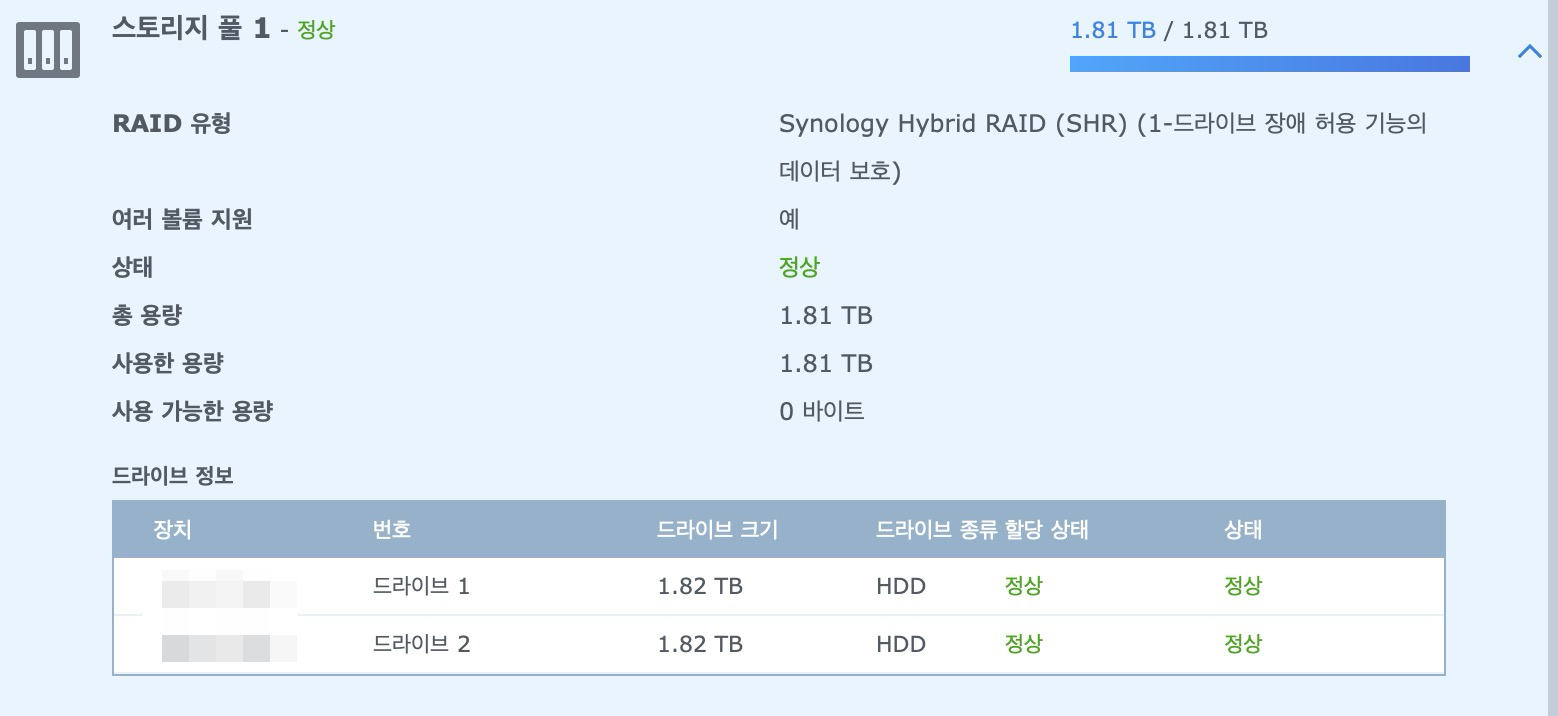 '만약 호환어댑터를 썼는데도 부팅 안되면 어떡하지?'란 생각에 주변 컴퓨터 가게나 복구 업체를 알아보기도 하고, 윈도우 PC에 연결해서 데이터를 빼올 생각을 하니 또 연결 케이블도 없고, 무엇보다 시놀로지 나스는 리눅스 기반인데 그럼 또 리눅스 필요하고... 골치아픈 일들이 산재해 있을 것 같아서 염려했었지만, 다행스럽게도 호환어댑터로 부팅 성공했고 데이터 접근이 다시 가능했다.