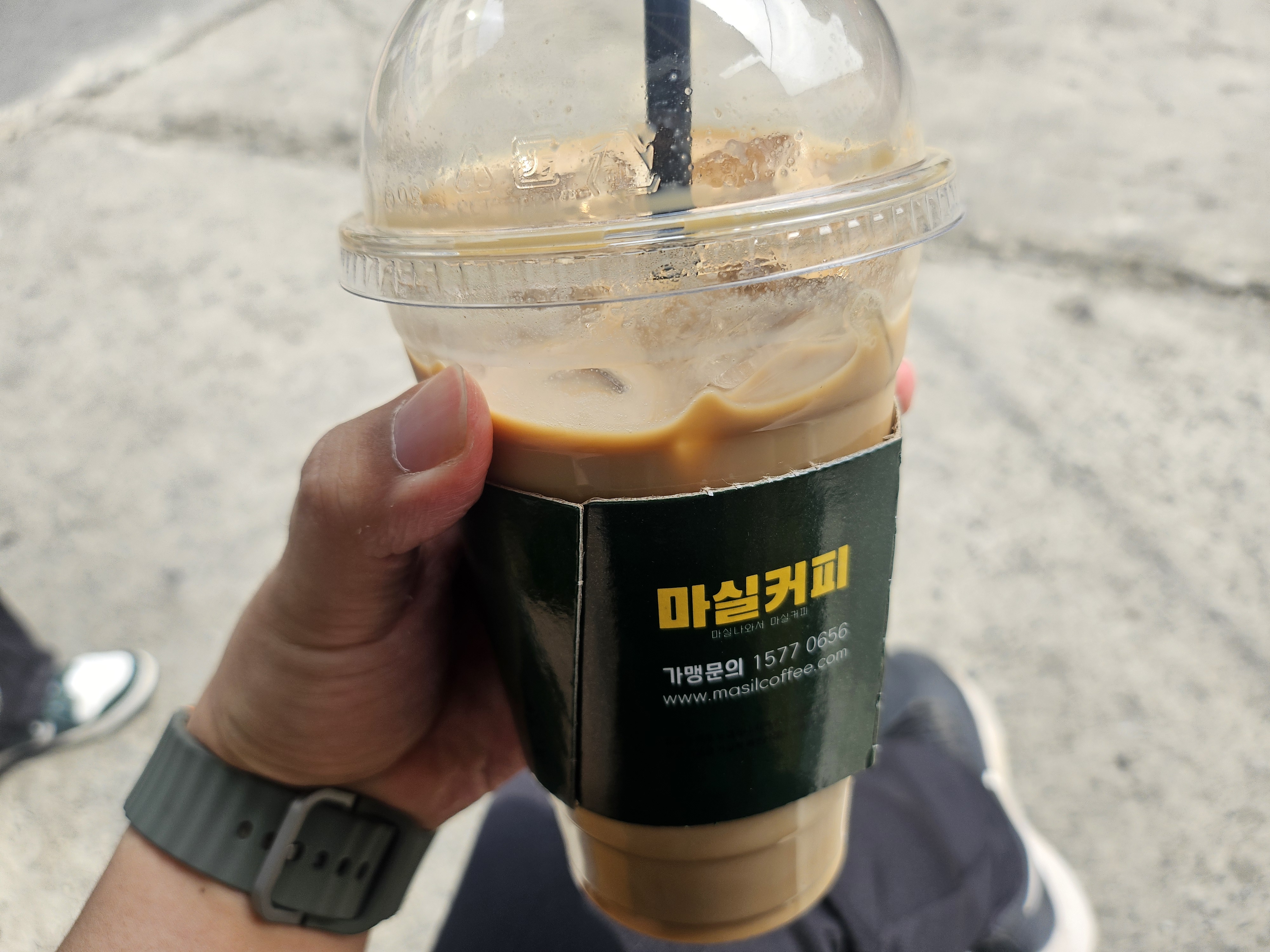 대구 동구 신암동 동서시장 근처에 보면 마실커피라고 커피 가게가 있다. 바로 옆에 야외에서 앉아서 먹을 수 있는 테이블이 있고 가게 안에는 테이블이 2개인가 3개인가 있었다. 날씨 좋아서 야외에서 다 마시고 감...ㅋㅋ