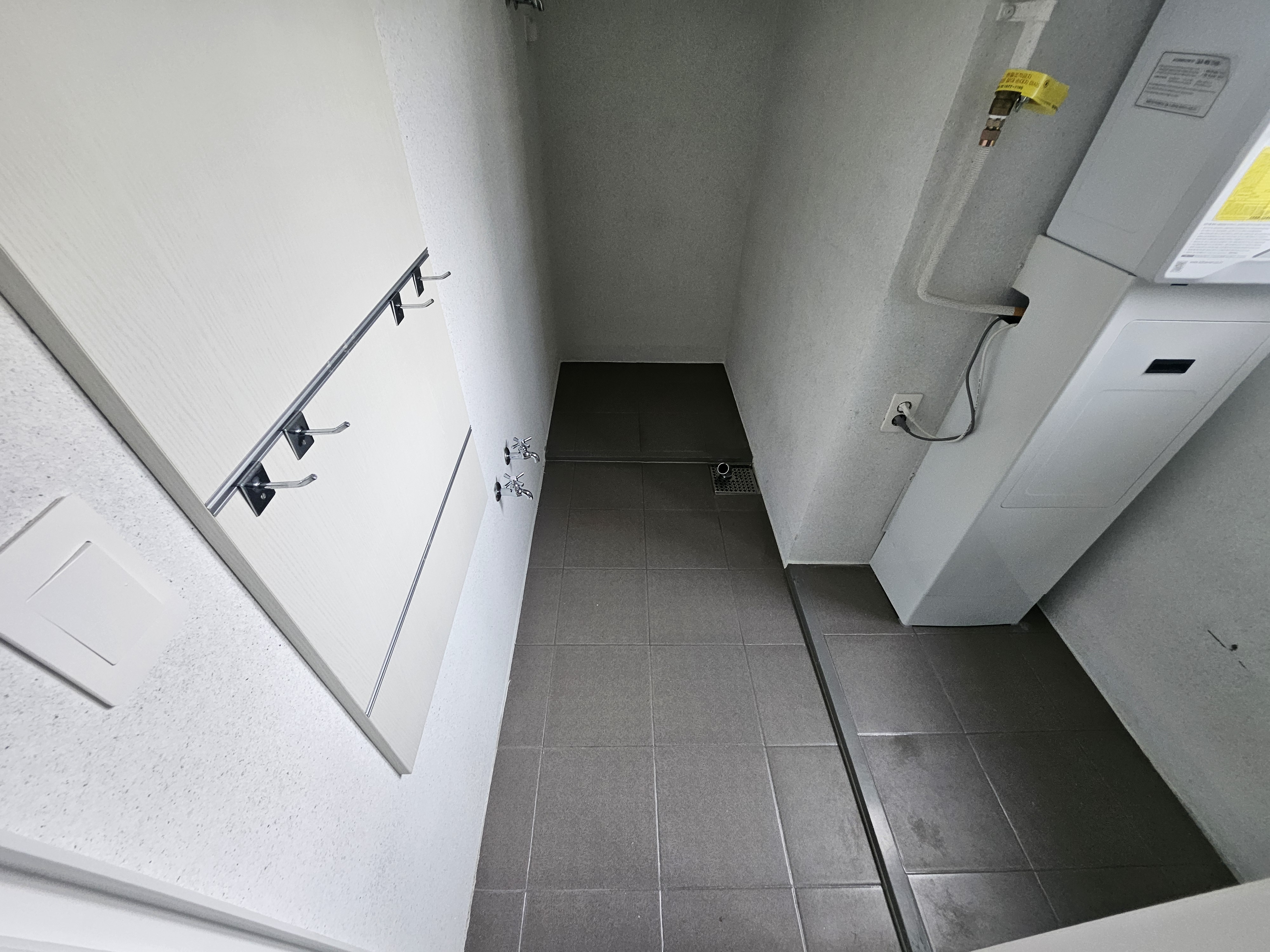 세탁기 설치하는 공간도 깨끗. 맨발로 들어가도 될 정도였다.