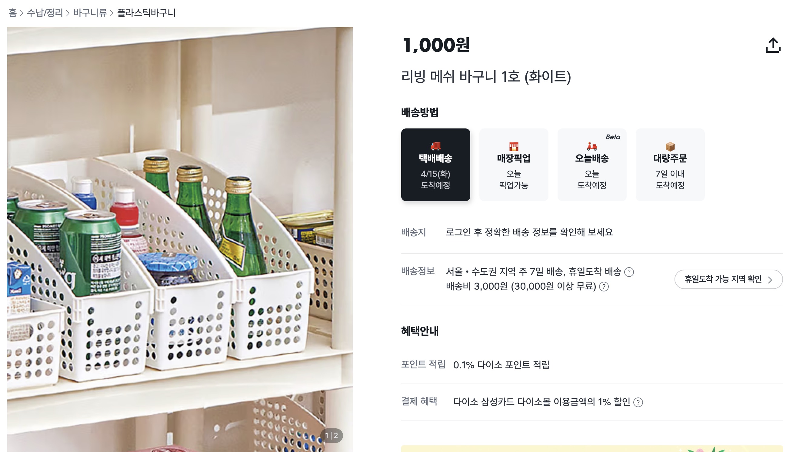 손잡이형 다용도 수납함 소짜를 활용하기로 하고