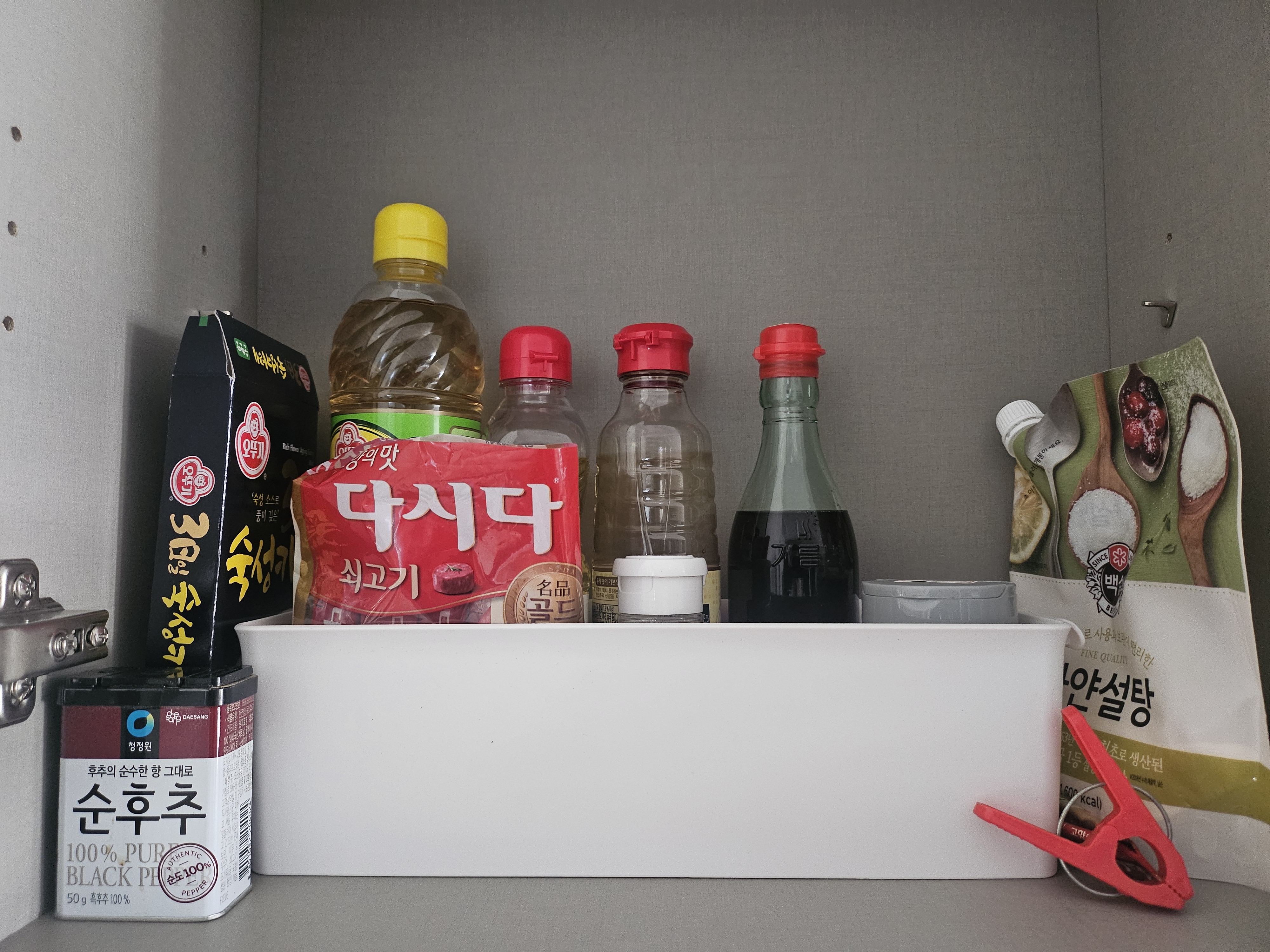 주방에서 자주 쓰는 간장이나 식용유, 식초 같은 것들을 그냥 수납함 바닥에 두는걸 좀 좋아하지 않아서,