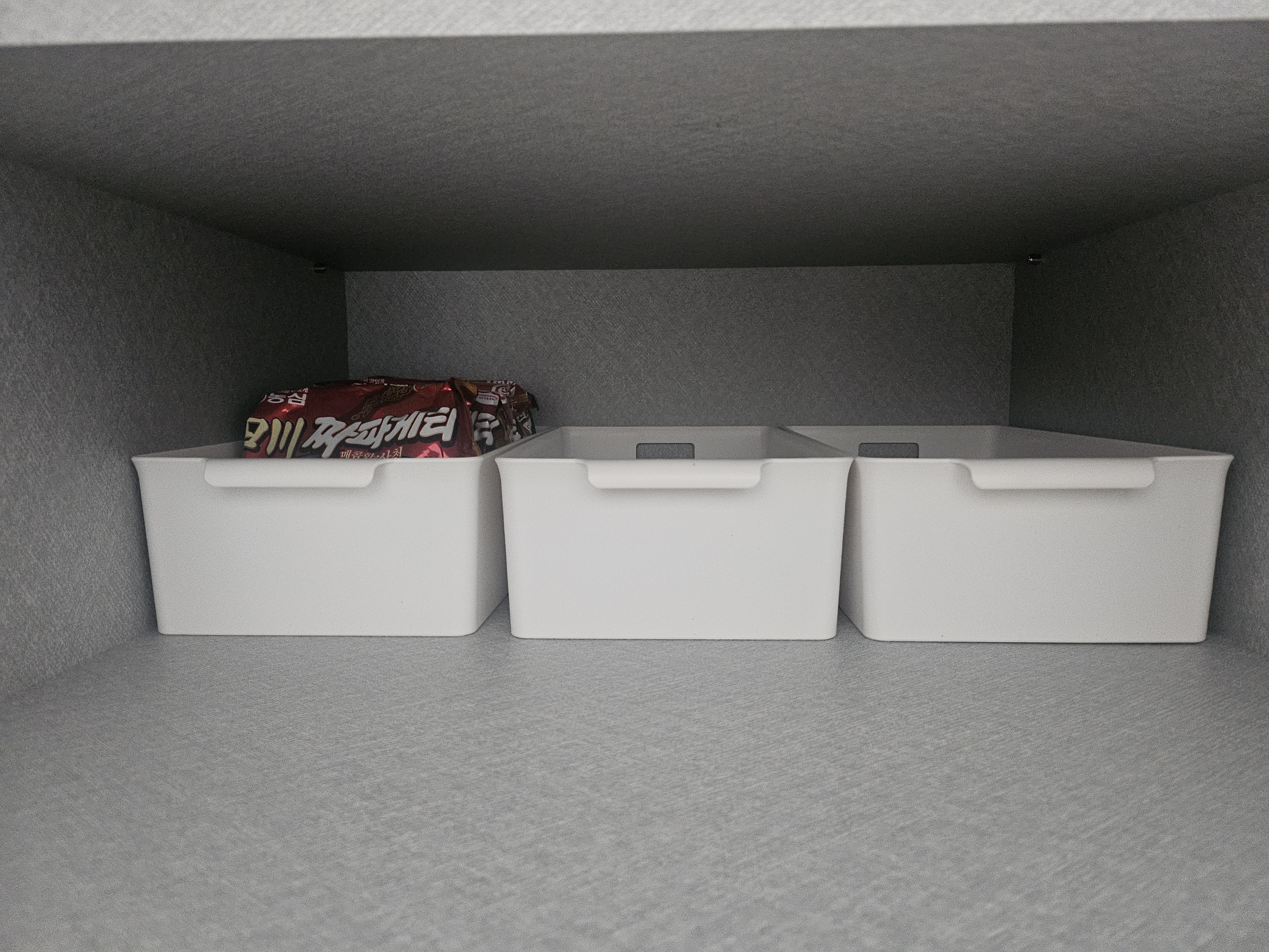 암튼 이번에 펜트리 수납함이랑 다용도 수납함을 구매해서 시도해보았는데 적절한 것 같다.