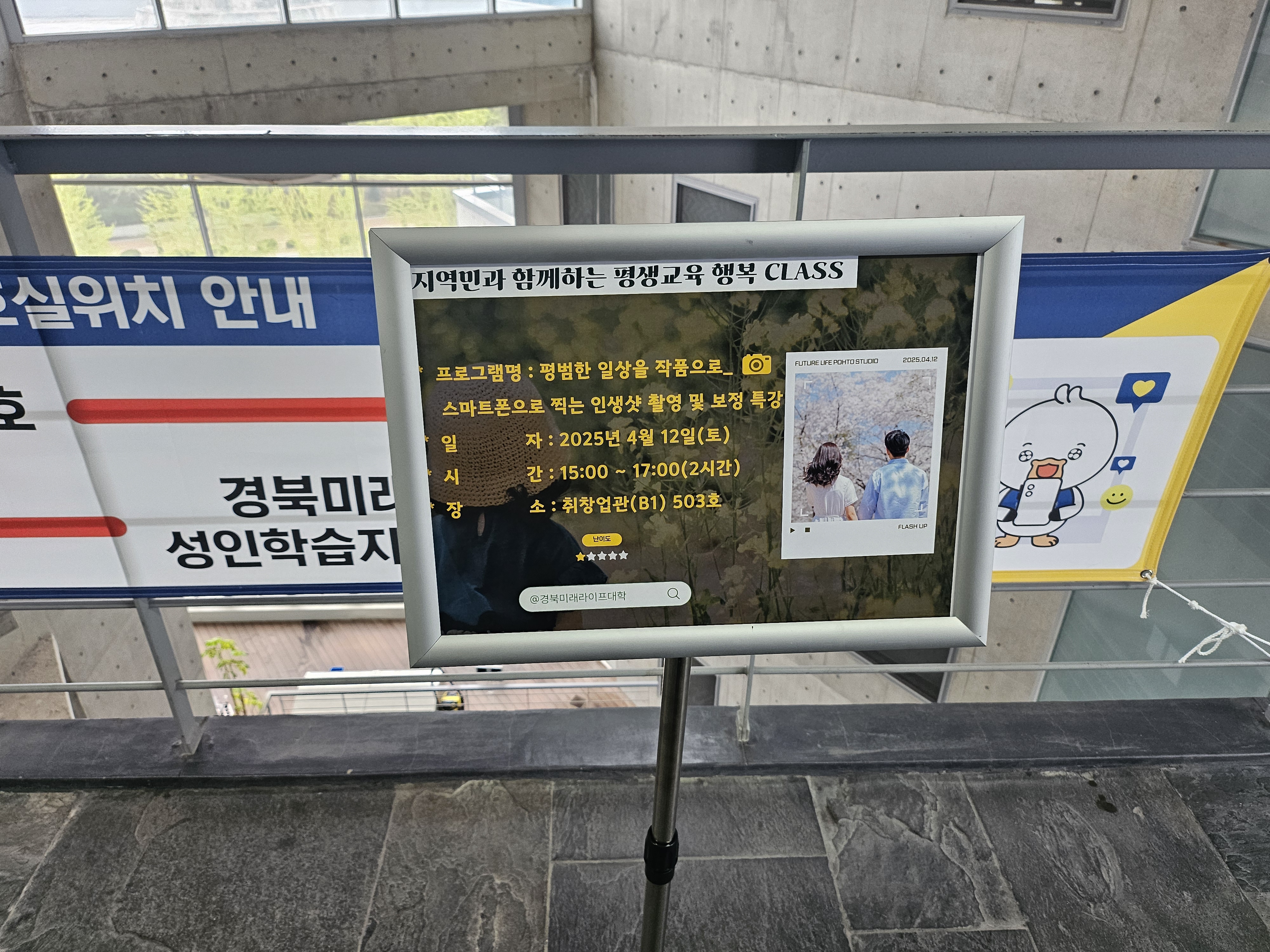 지역민과 함께하는 평생교육 행복CLASS라는 타이틀이 참 좋더라고요. 지역민분들과 함께 스마트폰 사진 촬영 및 편집과 AI 사진편집 기법 등을 쉽고 재미있게 배워보는 강의로 준비해서 진행하였습니다.