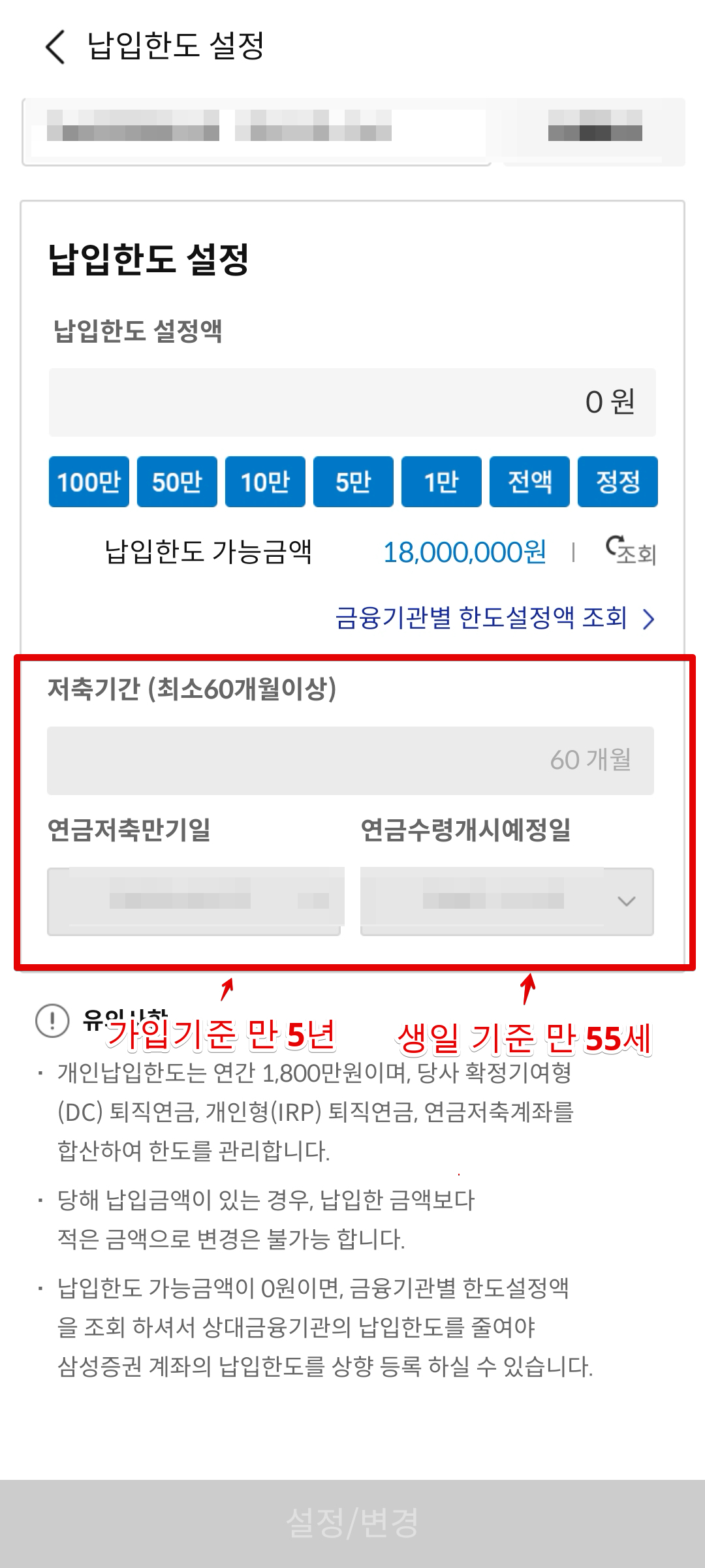 삼성증권 연금저축계좌 납입한도 설정하기