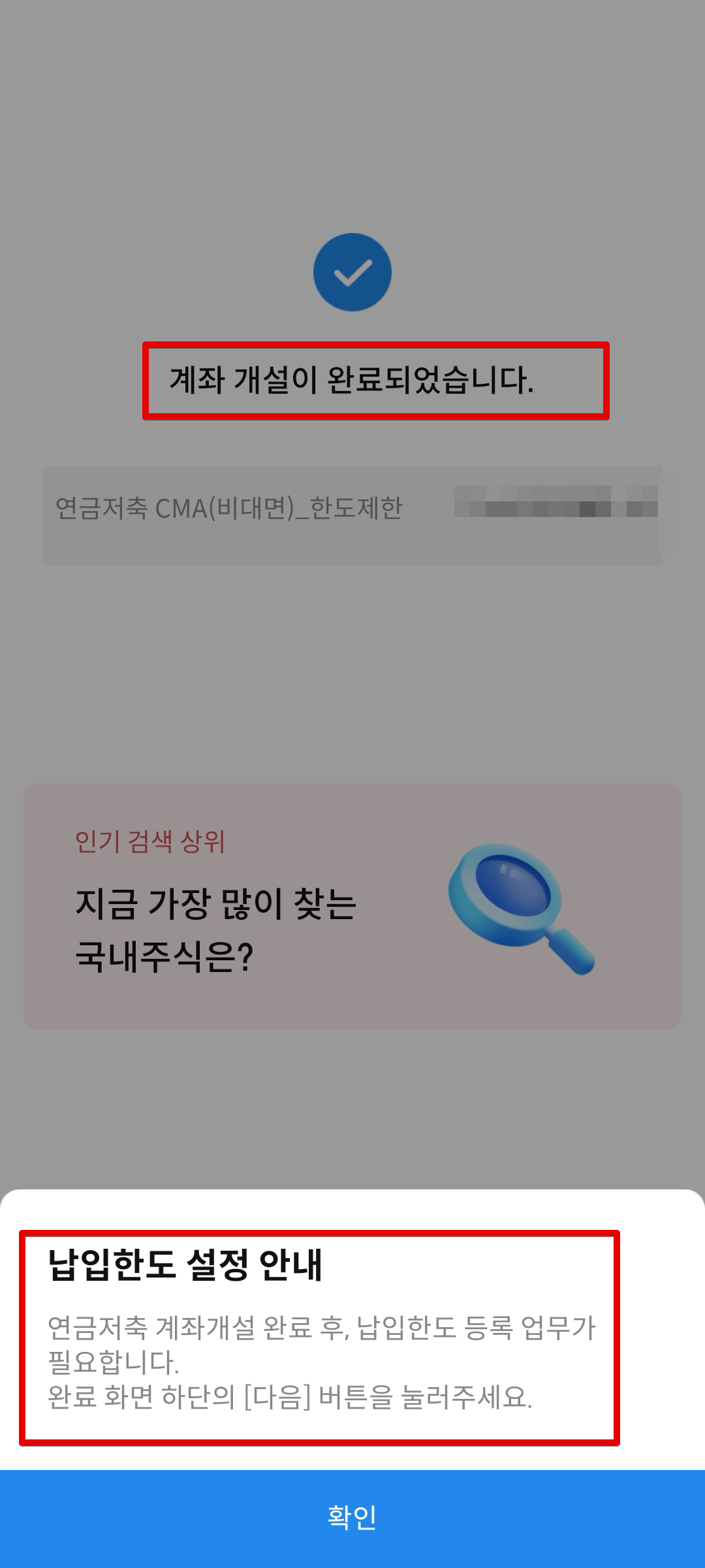 여기까지 하게되면 계좌개설이 완료된다. 하지만 여기에서 끝이 아니라 1년간의 납입한도를 설정해야한다.