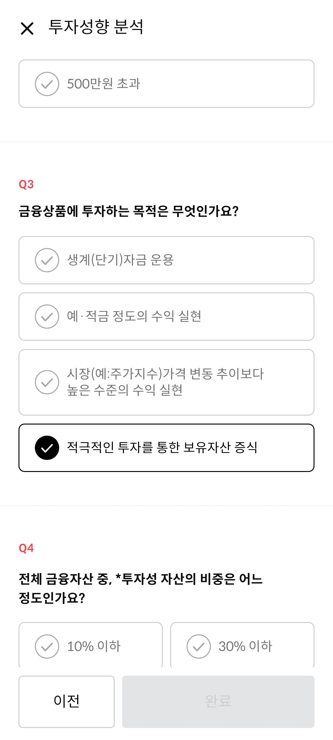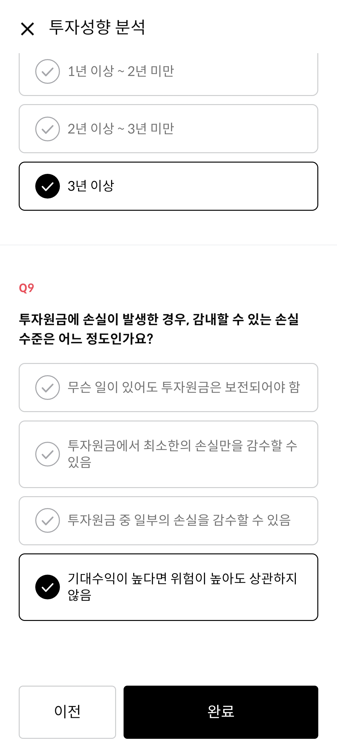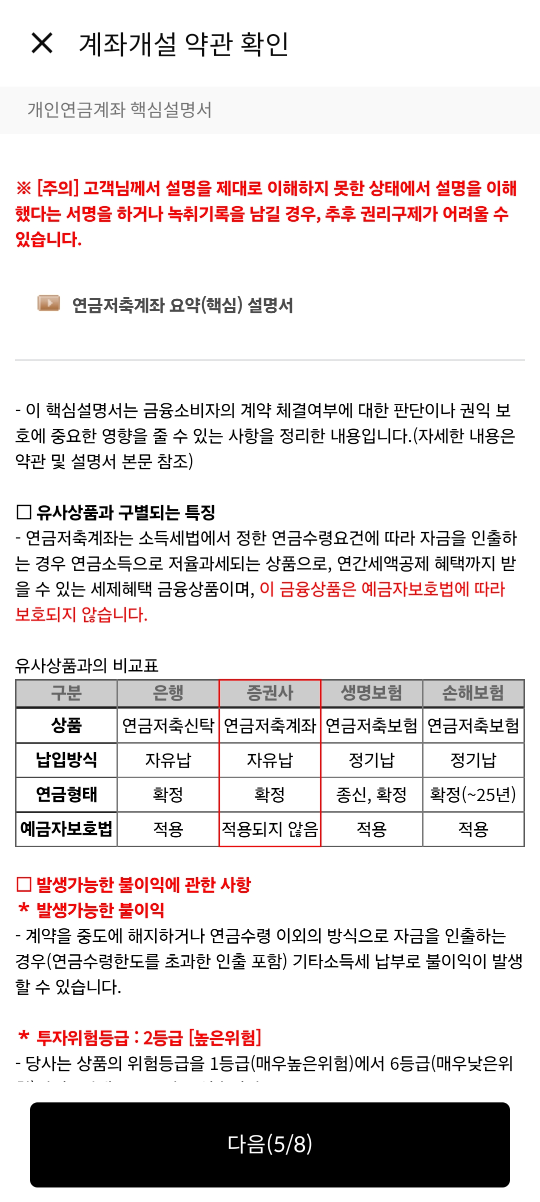 투자성향분석의 경우 위 이미지를 그대로 따라하기보다는 자신의 성향을 파악하기 위해 위 내용들을 잘 읽어보고 체크하도록 하자.