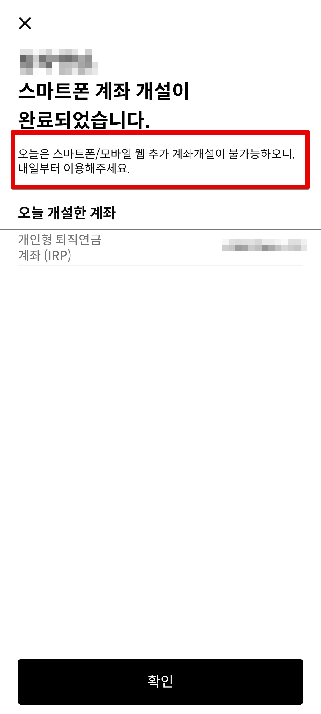 다음으로 실명 확인 단계가 이어진다. 여기까지 끝마치게 되면 이제 IRP 계좌 1개, 연금저축 계좌 1개를 보유할 수 있다. 이때 개인연금저축 계좌의 경우 한도제한계좌로 만들어진다.