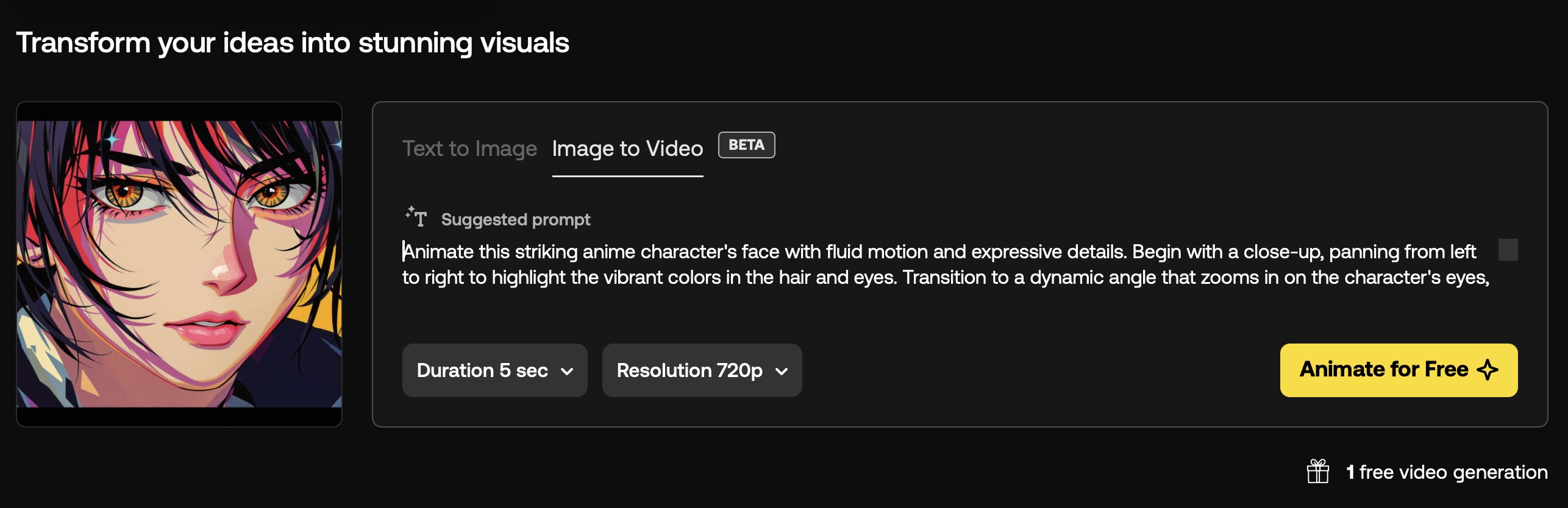- 필요할 경우 애니메이트 버튼을 클릭해서 생성된 이미지를 영상으로 바꾼다.