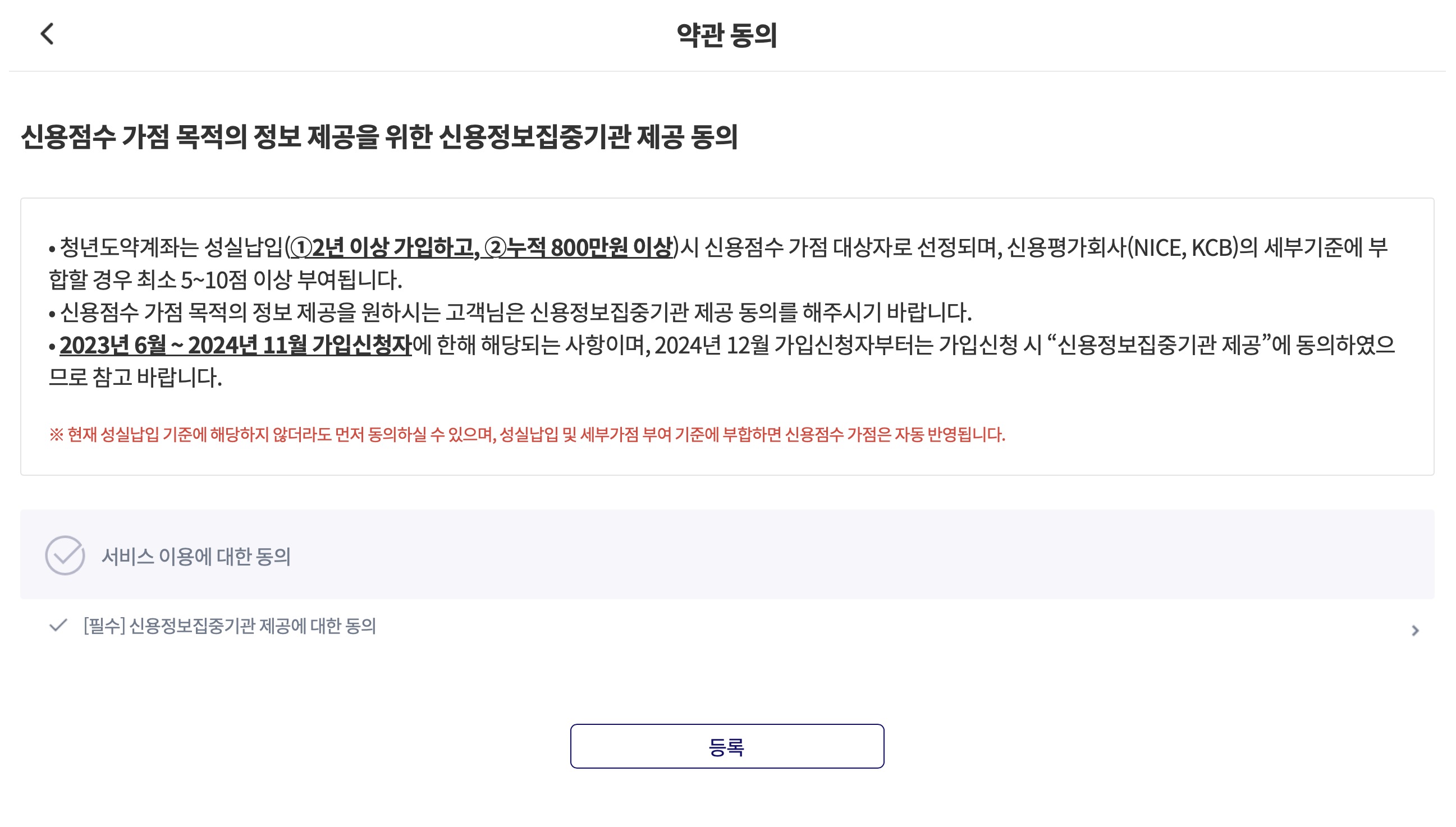 청년도약계좌 신용가점 정보제공 추가동의 진행하기