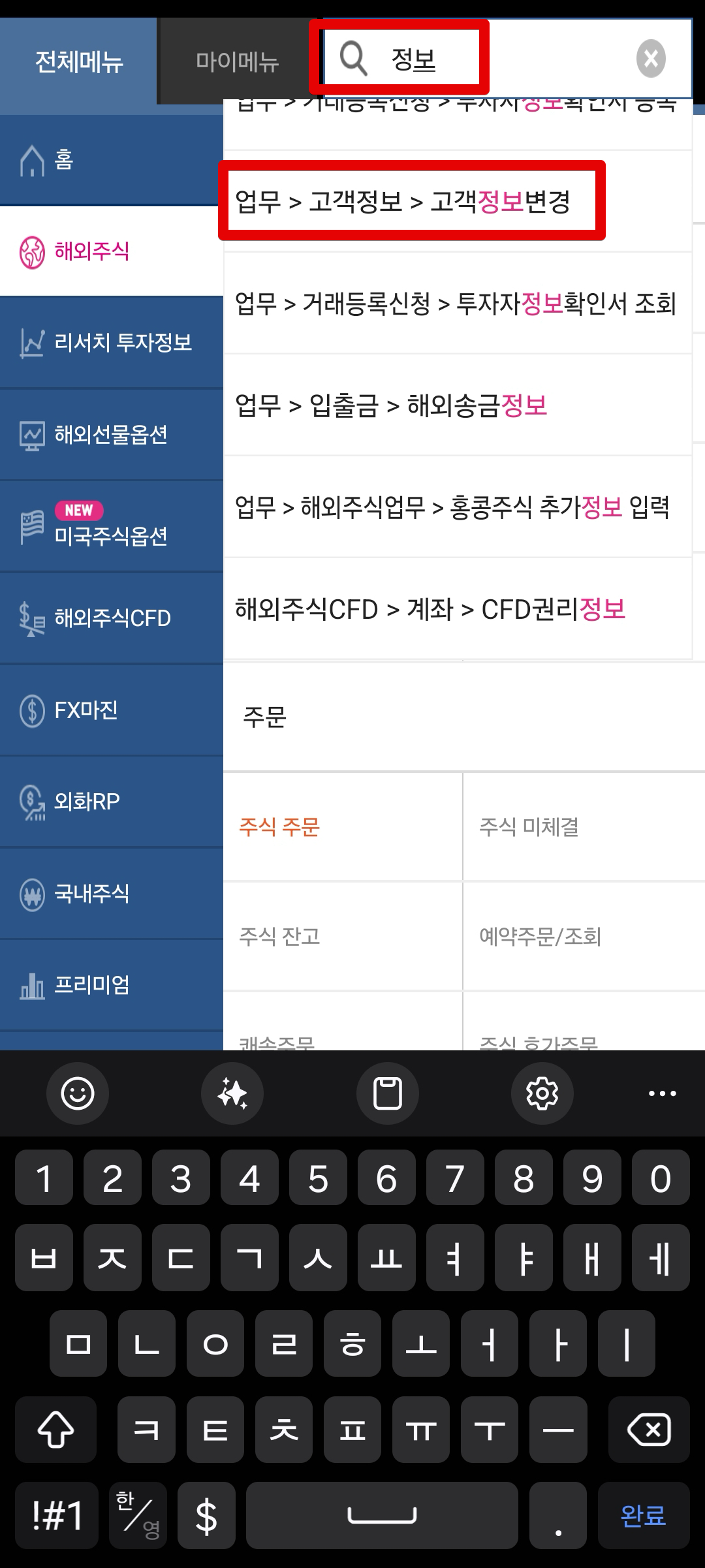키움증권은 [고객정보변경]이라는 메뉴에서 주소를 변경할 수 있었다. 여기에서 변경해준다.