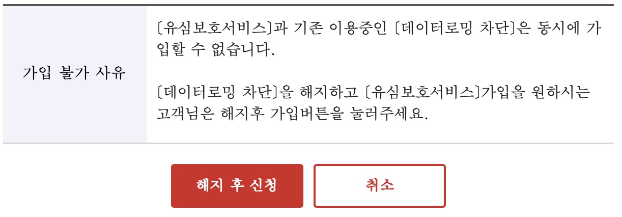 하지만 아래쪽에 해지 후 신청 버튼이 표시되기 때문에 따로 해지할 필요없이 해지하면서 신청할 수 있다.