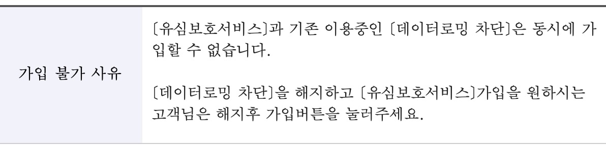 데이터로밍 차단 서비스에 가입돼 있어서 가입이 안된다고 한다.