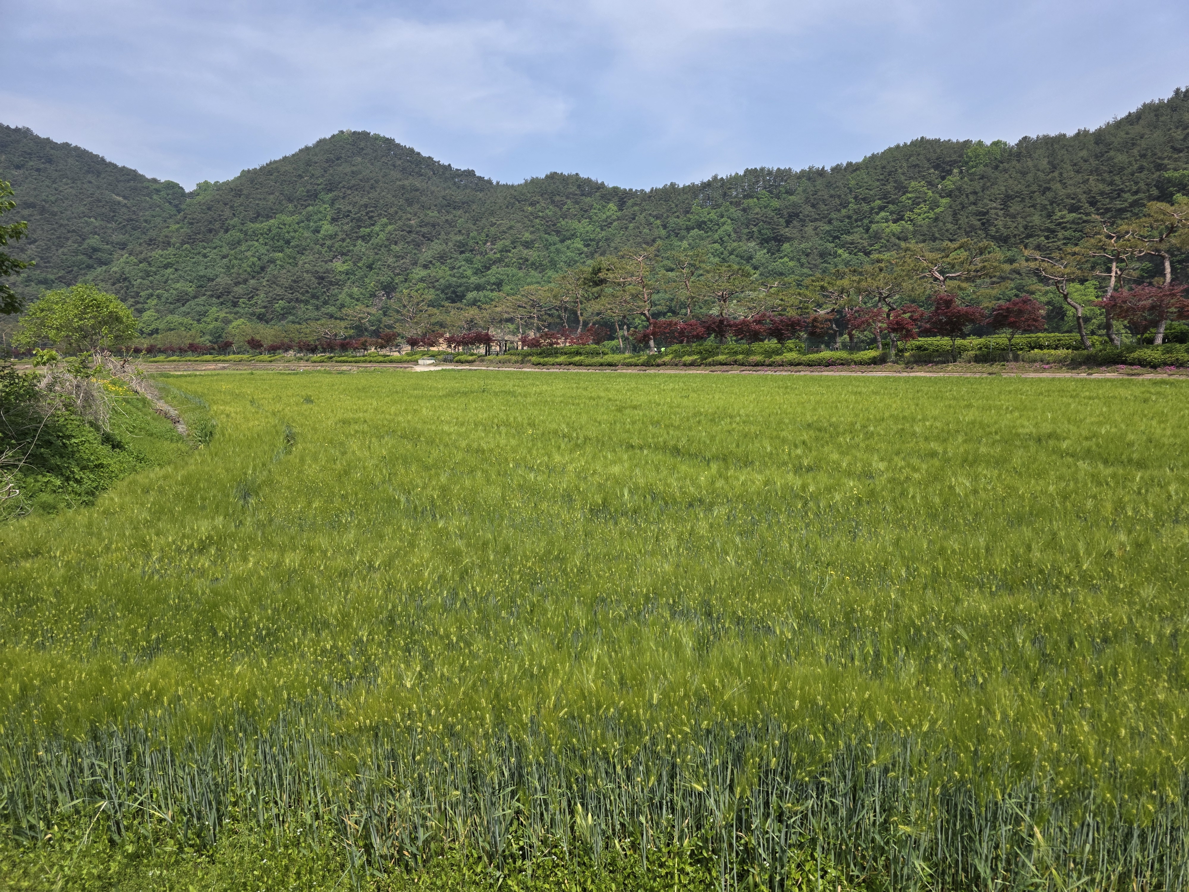 시원한 바람에 살랑거리는 청보리와 마을 주변 풍경도 감상해보았습니다. 초록색을 많이 접하니 눈와 마음 모두가 치유되는 기분이었어요.
