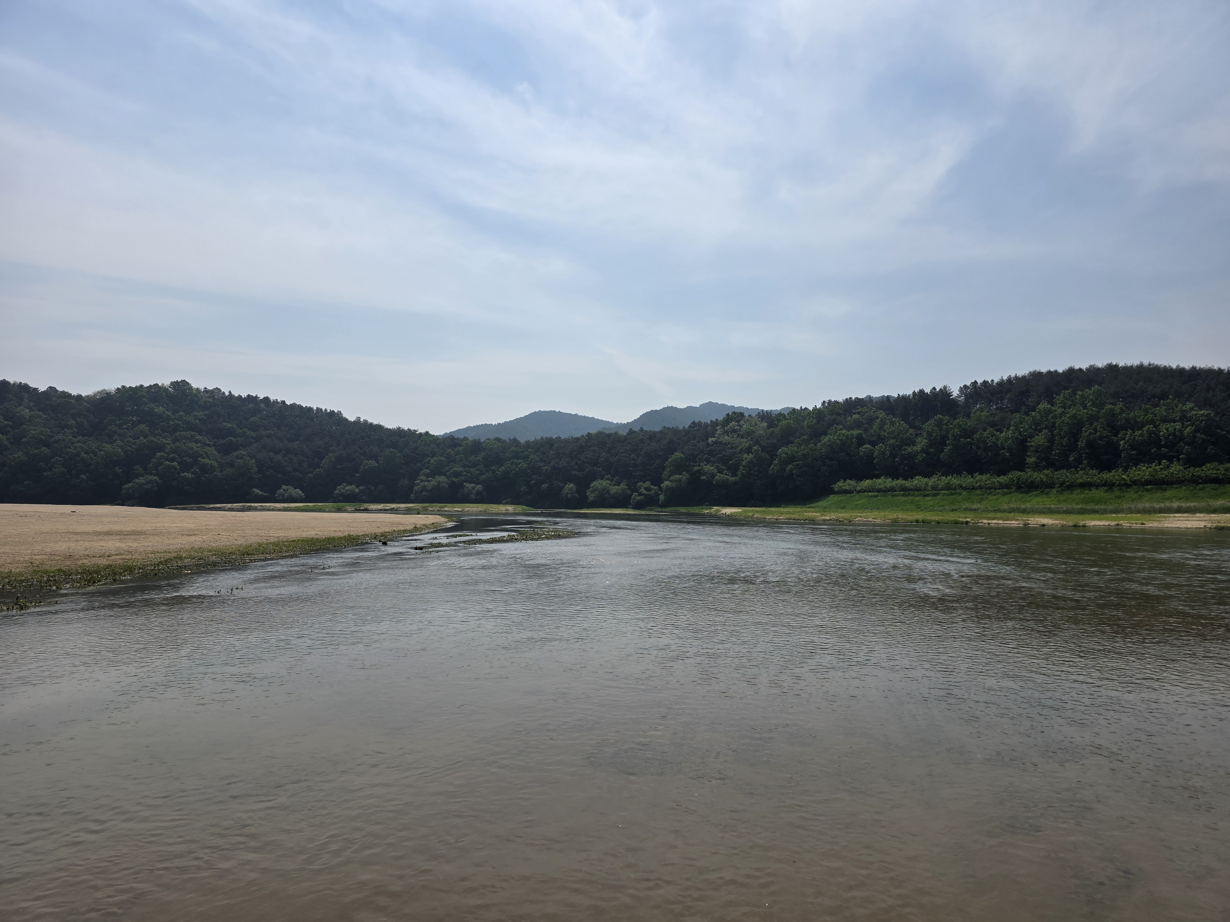 뿅뿅다리 위에서 바라보는 풍경입니다. 예전에 1박 2일이라는 프로그램에서도 집중적으로 다루어졌던 공간인데 야트막한 강물이지만 참 아름다운 풍경을 간직한 공간이기도 합니다.