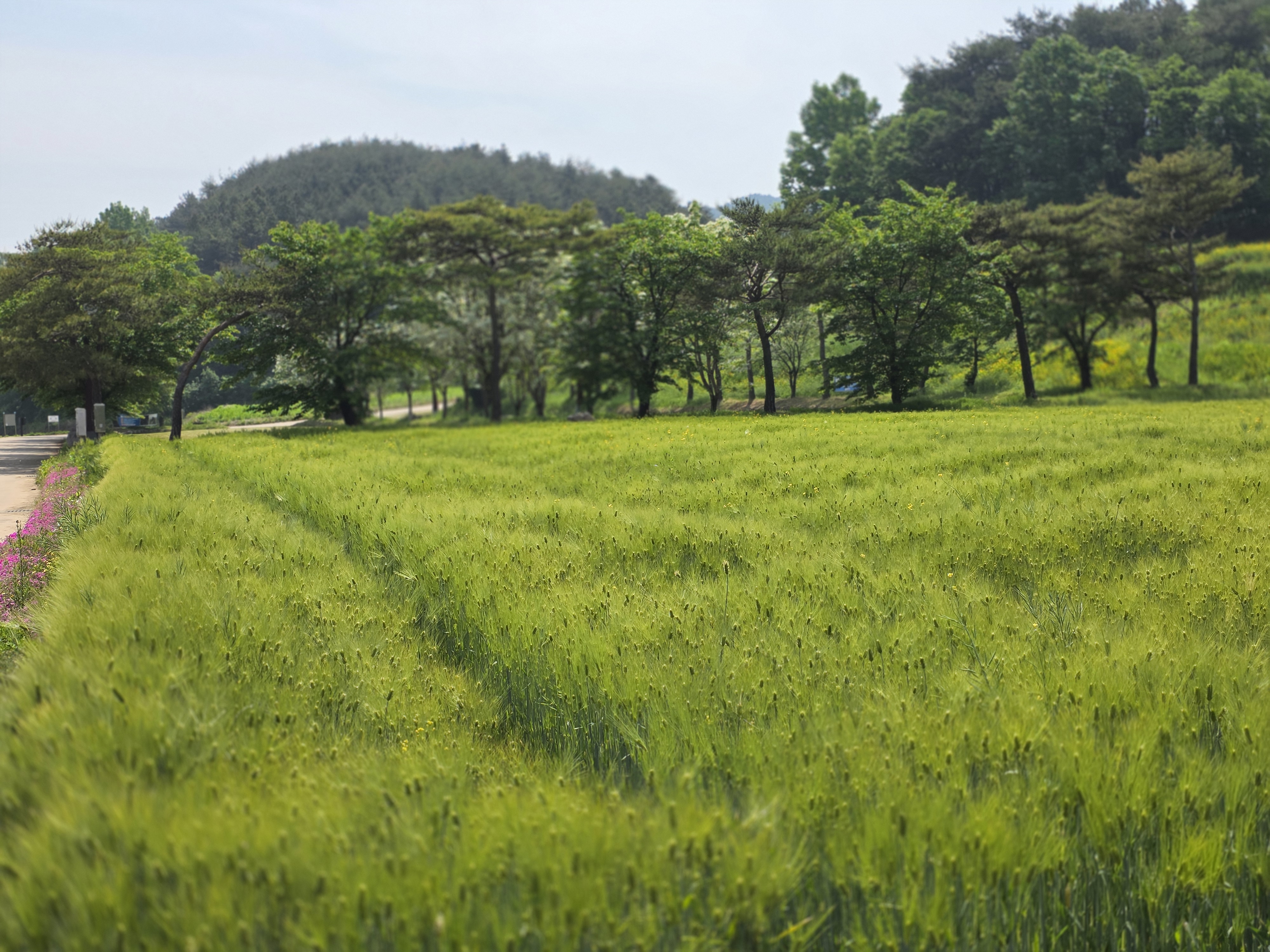 시원한 바람에 살랑거리는 청보리와 마을 주변 풍경도 감상해보았습니다. 초록색을 많이 접하니 눈와 마음 모두가 치유되는 기분이었어요.