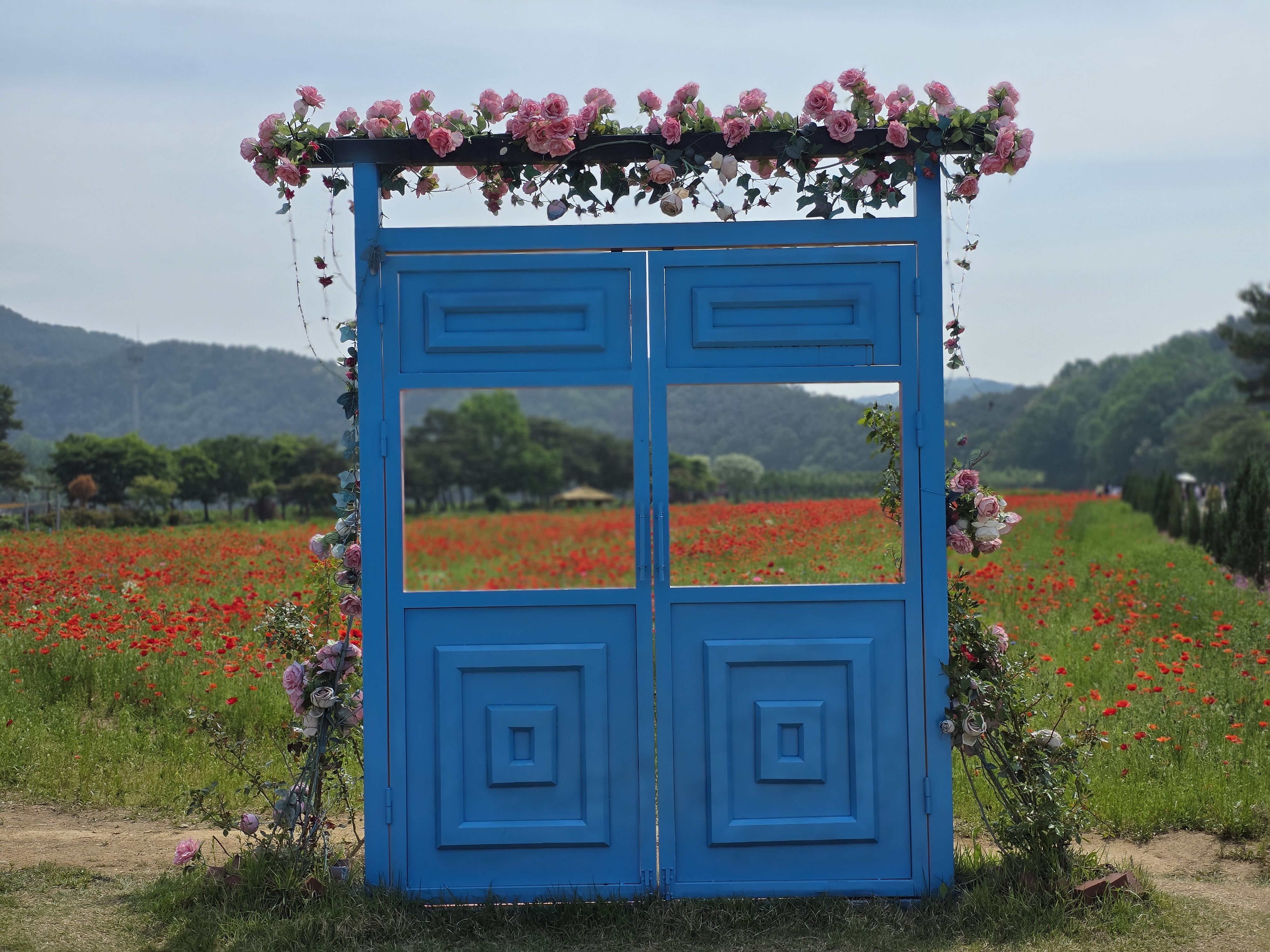 5월의 예천 회룡포마을에서 가장 인기있는 포인트인 양귀비 정원도 만나보았습니다. 끝없이 펼쳐진 붉은 양귀비꽃의 물결은 그야말로 장관이었는데요. 강렬하면서도 매혹적인 붉은색 꽃잎들을 보러 많은 관람객분들이 오셨더라고요. 푸른 하늘과 잘 어울리는 붉은 양귀비 꽃밭에서 잠시 감상해보았어요. 카메라 셔터를 누르며 아름다운 풍경들은 사진으로 담아보았습니다.