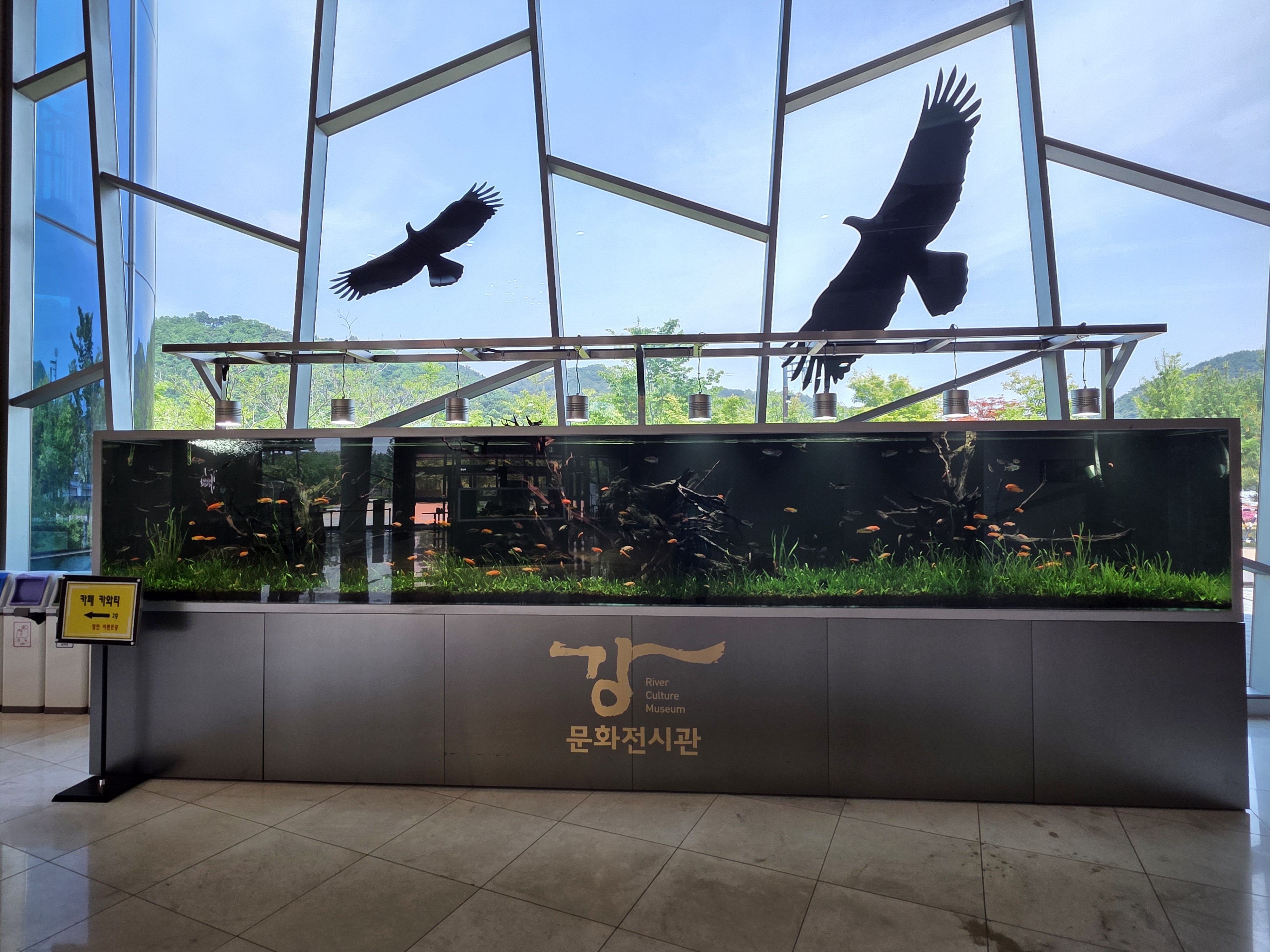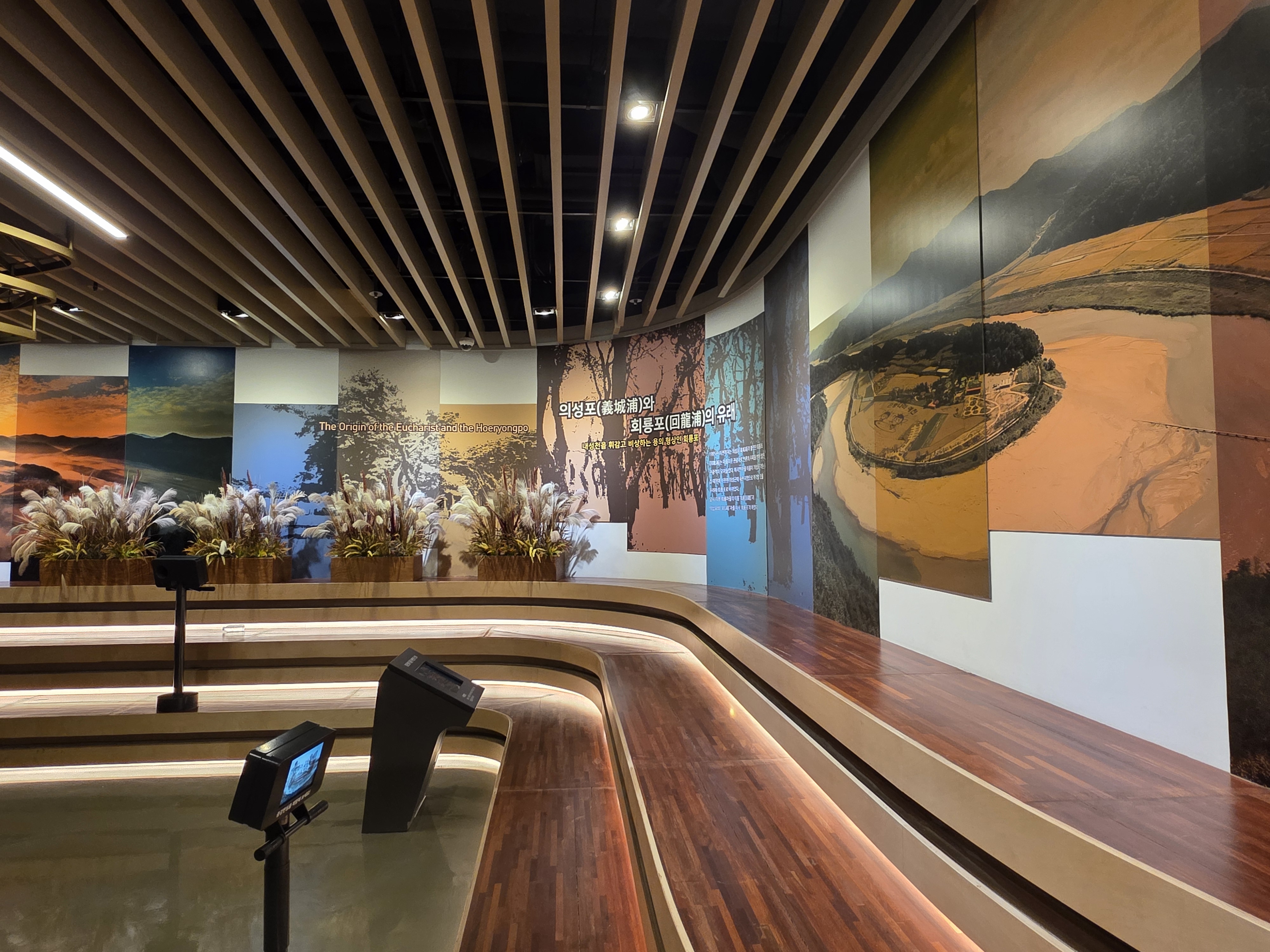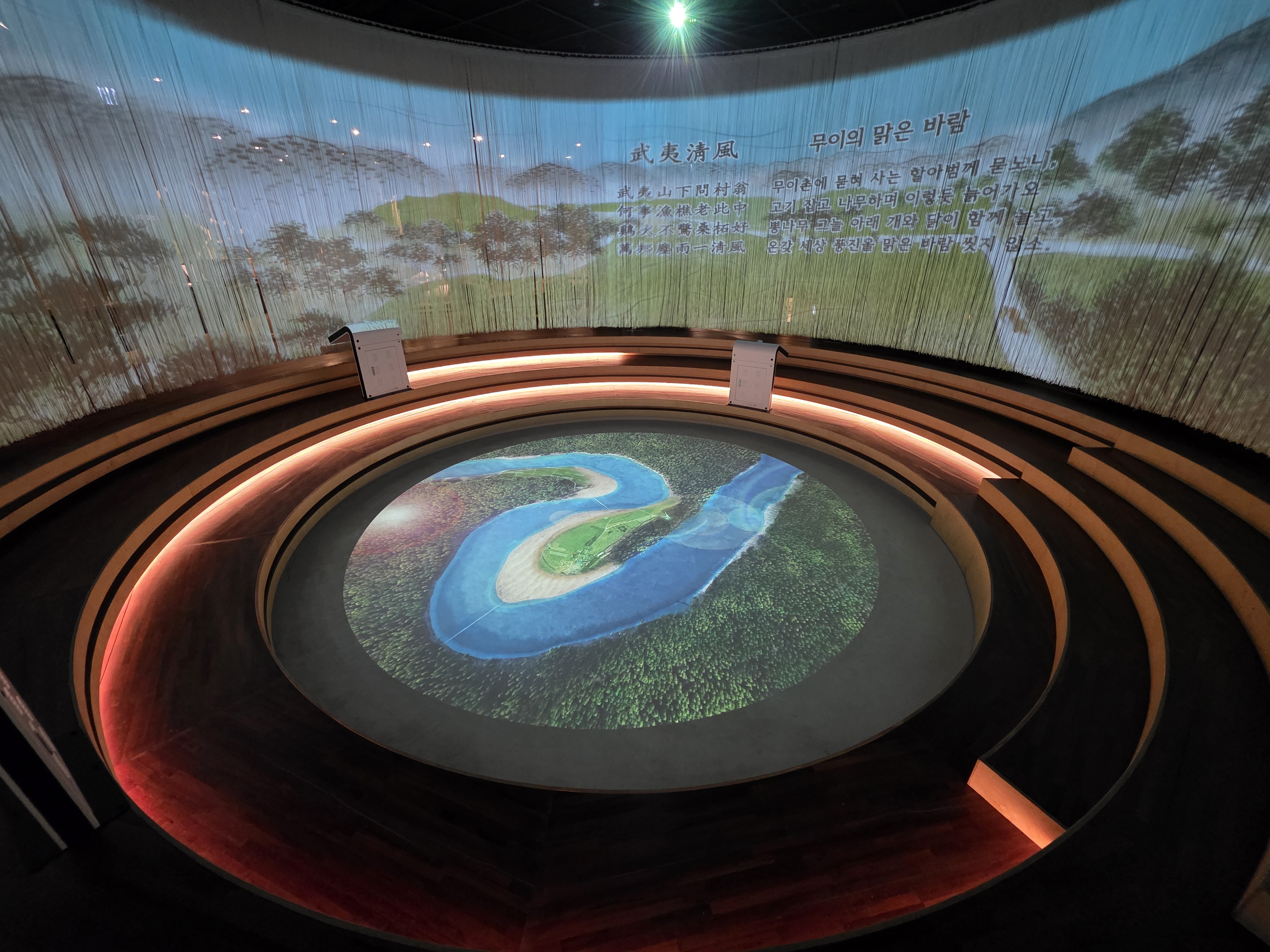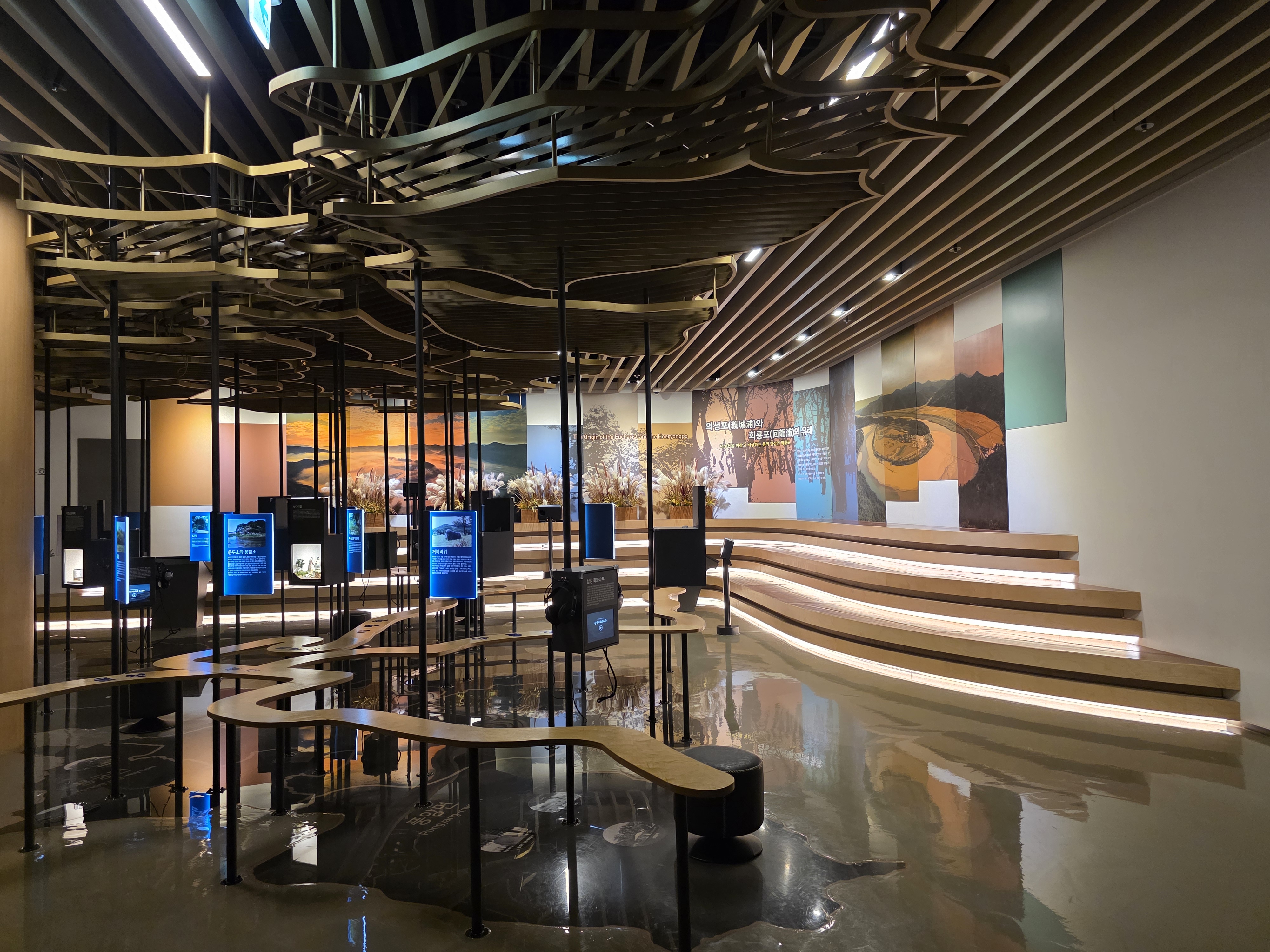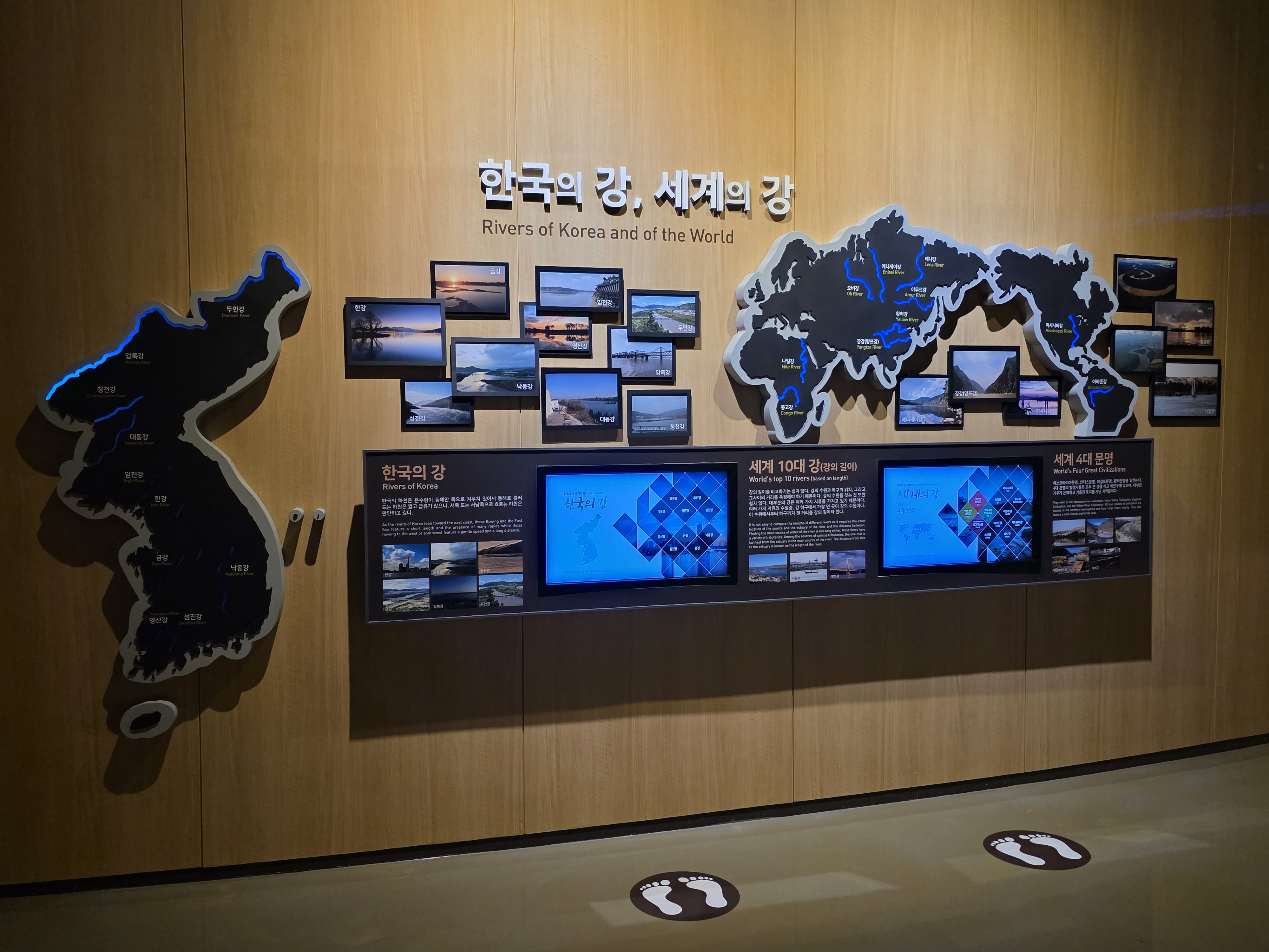 전시관 중앙 홀에는 커다란 스크린을 통해 역동적인 강물의 흐름을 담은 영상이 상영되고 있었습니다. 드넓은 강 위를 직접 배를 타고 나아가는 듯한 몰입감을 선사하며, 자연의 웅장함과 아름다움을 다시 한번 깨닫게 해주는 경험입니다. 잠시 자리에 앉아 영상을 감상하며 복잡했던 머릿속을 맑게 정화시키는 시간을 가졌습니다.