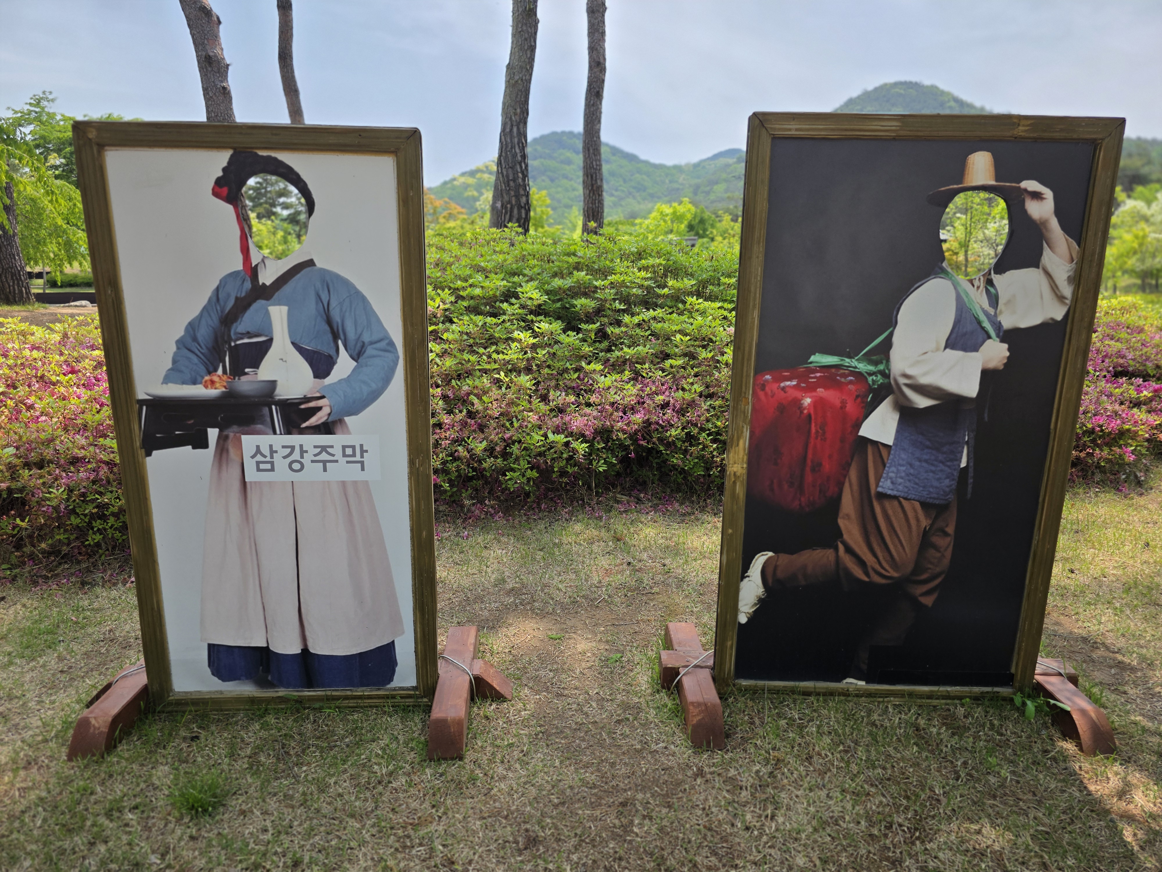 강문화전시관에서 전시 관람을 하기 전, 전시관 주변의 야외를 둘러봅니다. 공간이 넓기 때문에 천천히 둘러보는게 좋으며 다양한 볼거리들이 마련돼 있는 공간들입니다. 조형물과 삼강주막 포토존도 볼 수 있었습니다.