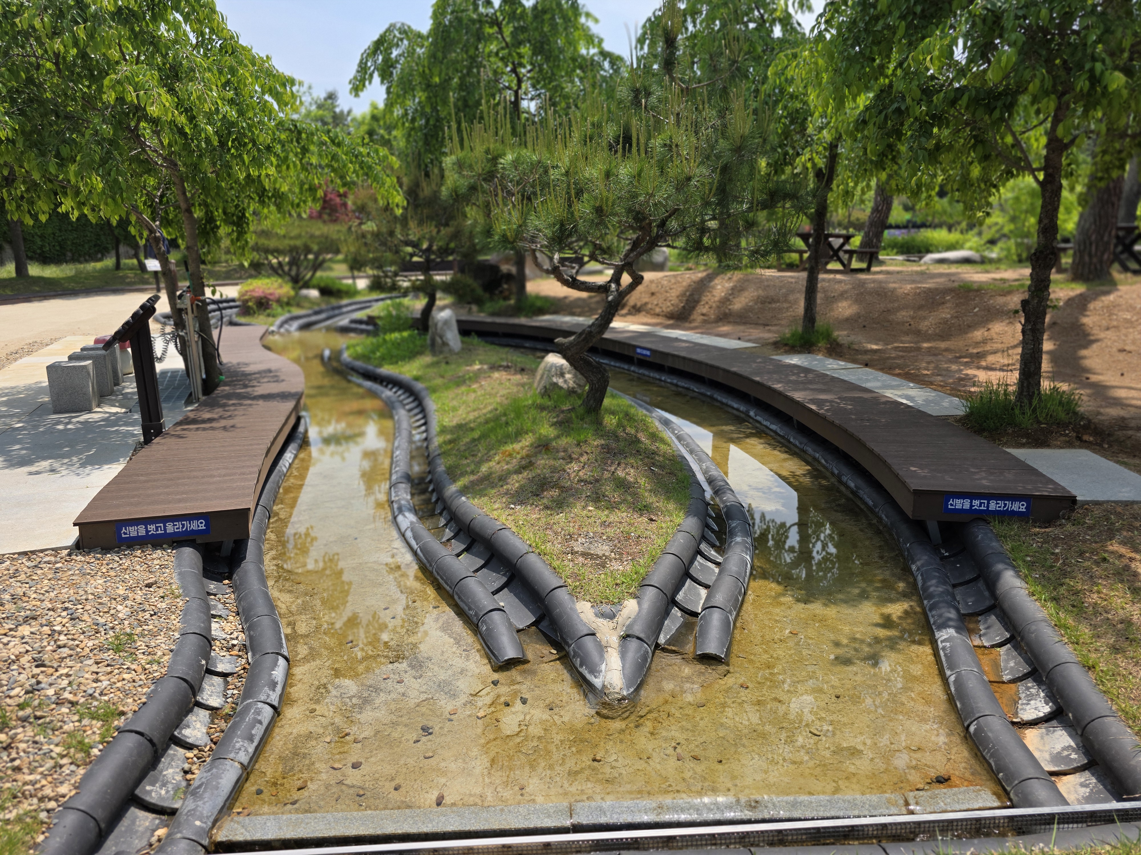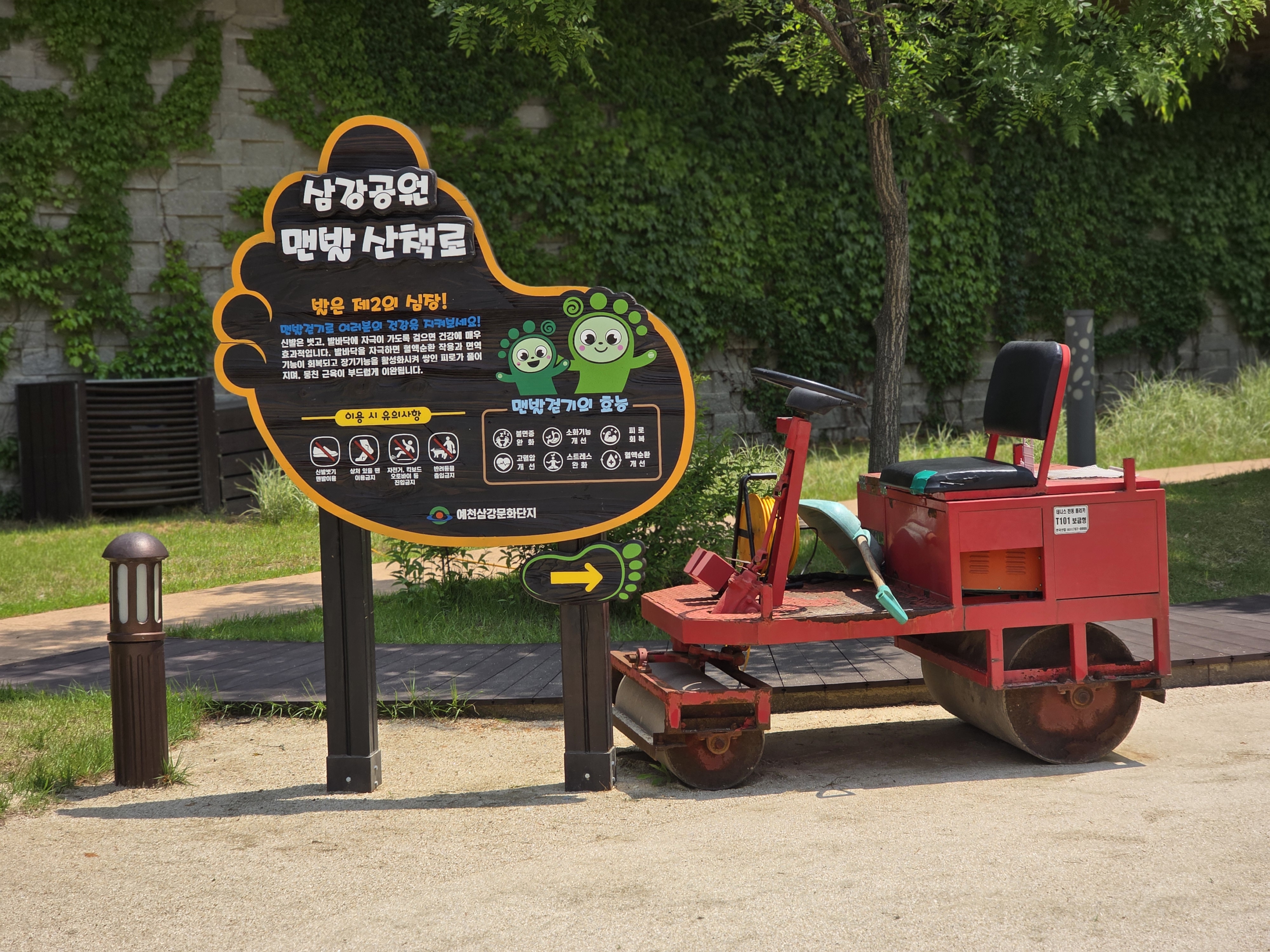 삼강공원 맨발산책로가 만들어졌습니다. 이후 세족장이 함께 조성되어서 맨발걷기를 통해 전시관 주변을 한바퀴 걸어보고나서 전시를 관람하거나 전시 관람 후 맨발걷기를 해보거나 할 수 있을 것 같아서 재미있어보였어요. 건강에도 도움이 되겠고요.