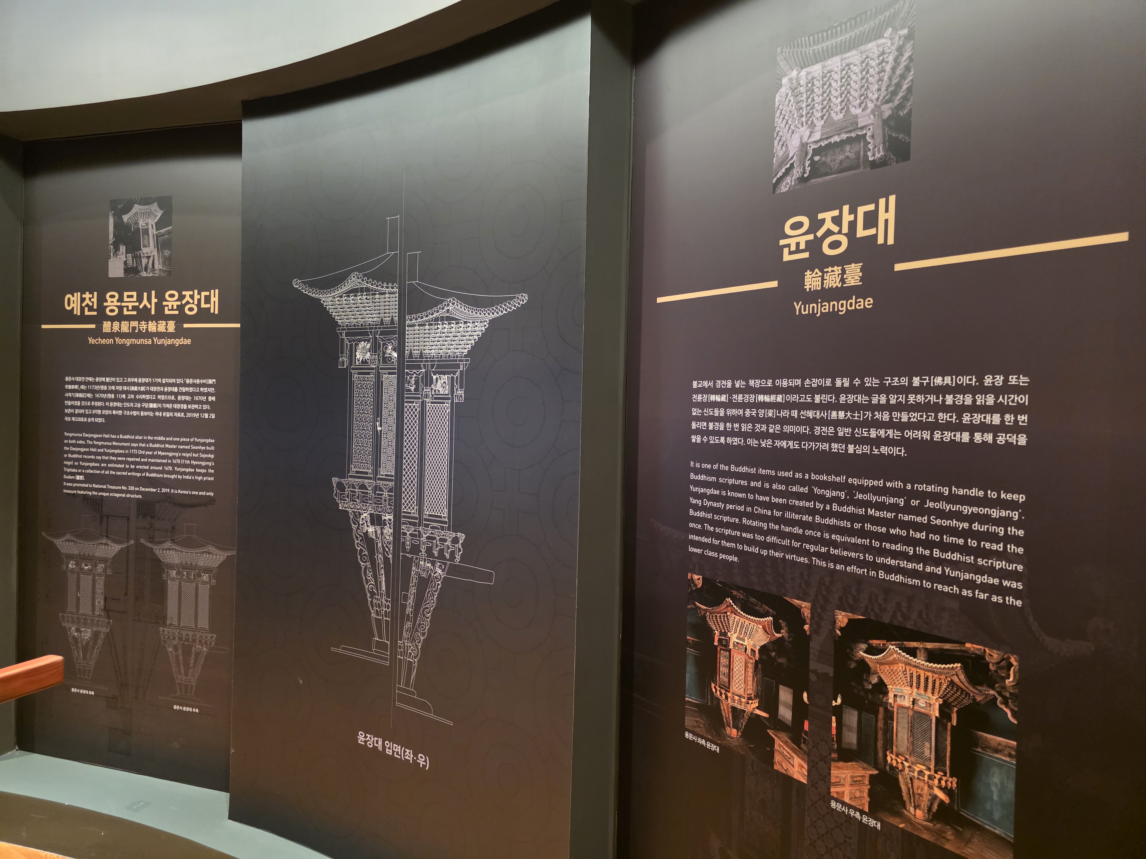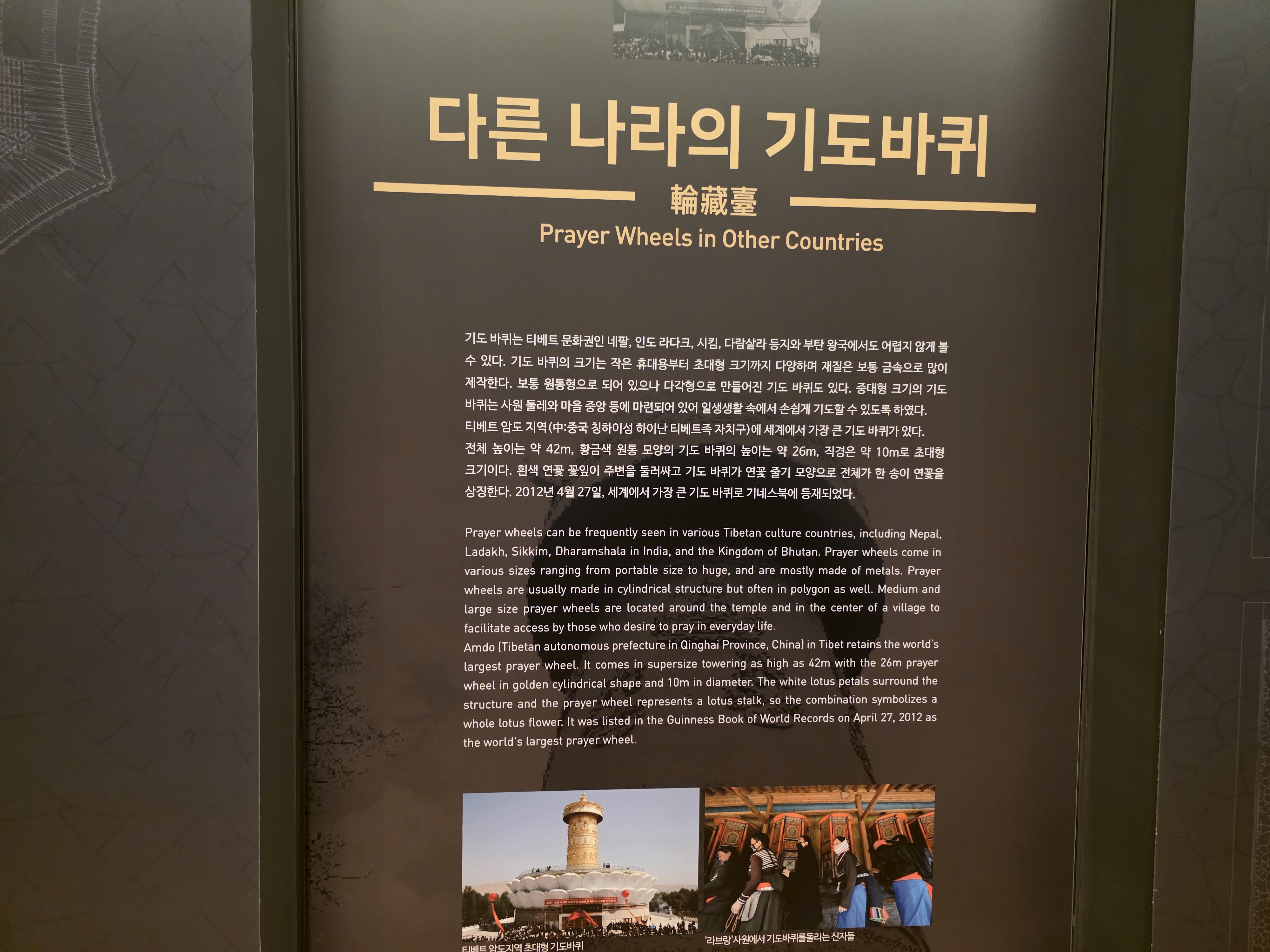 실제로 소원지를 적고 소원을 빌어볼 수 있는 윤장대에 대해 자세한 학습이 가능합니다. 다른 나라의 기도바퀴에 대한 문화도 확인할 수 있어서 유익했습니다.